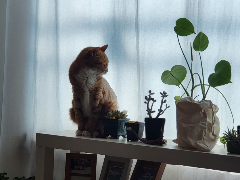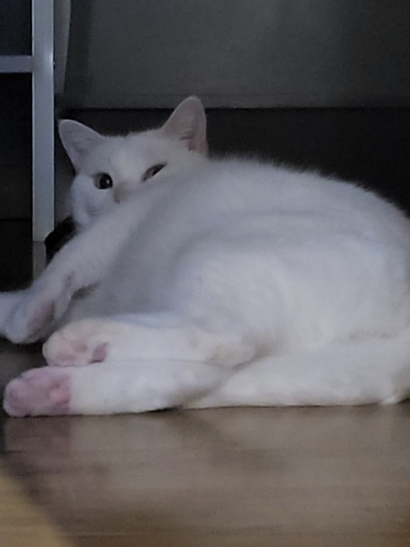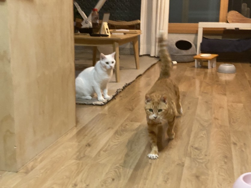 사람은 무서워하지만 다른 고양이나 강아지를 좋아해서 졸졸 따라다니면서 장난칩니다.