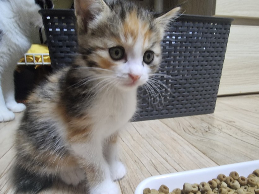 지금은 키튼용 사료를 먹고 있으며 물도 잘먹고 두부모래로 화장실도 잘 가립니다