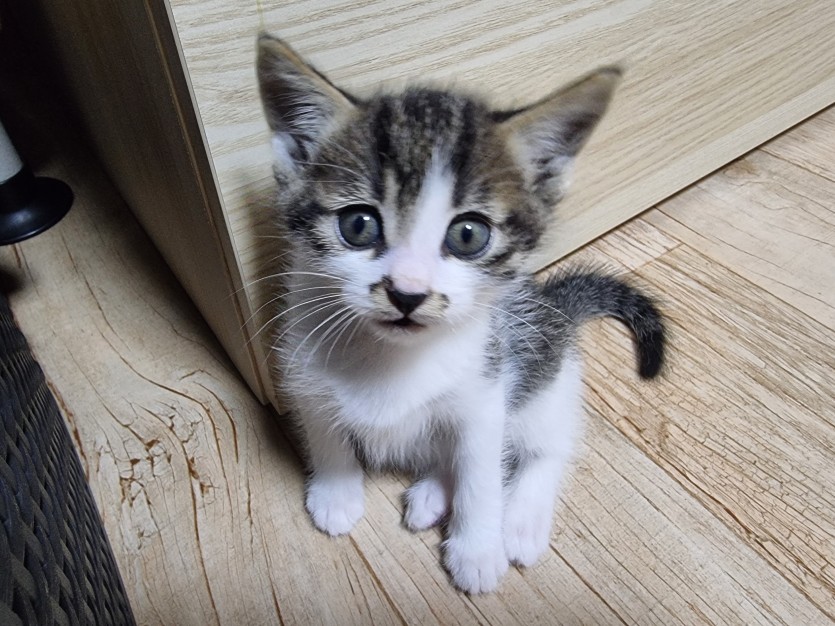지금은 키튼용 사료를 먹고 있으며 물도 잘먹고 두부모래로 화장실도 잘 가립니다