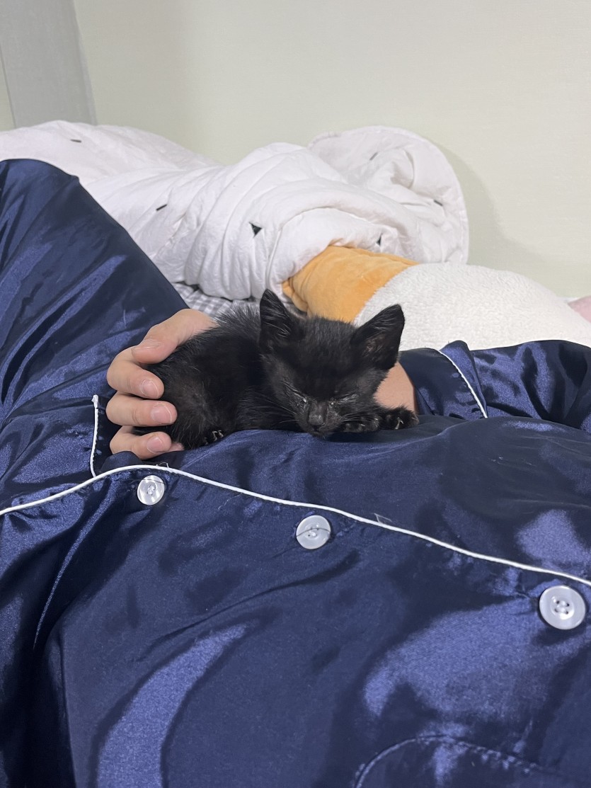 태어난지 한달정도인 아이이구요 쌔까만 털이 이쁜아이입니다.