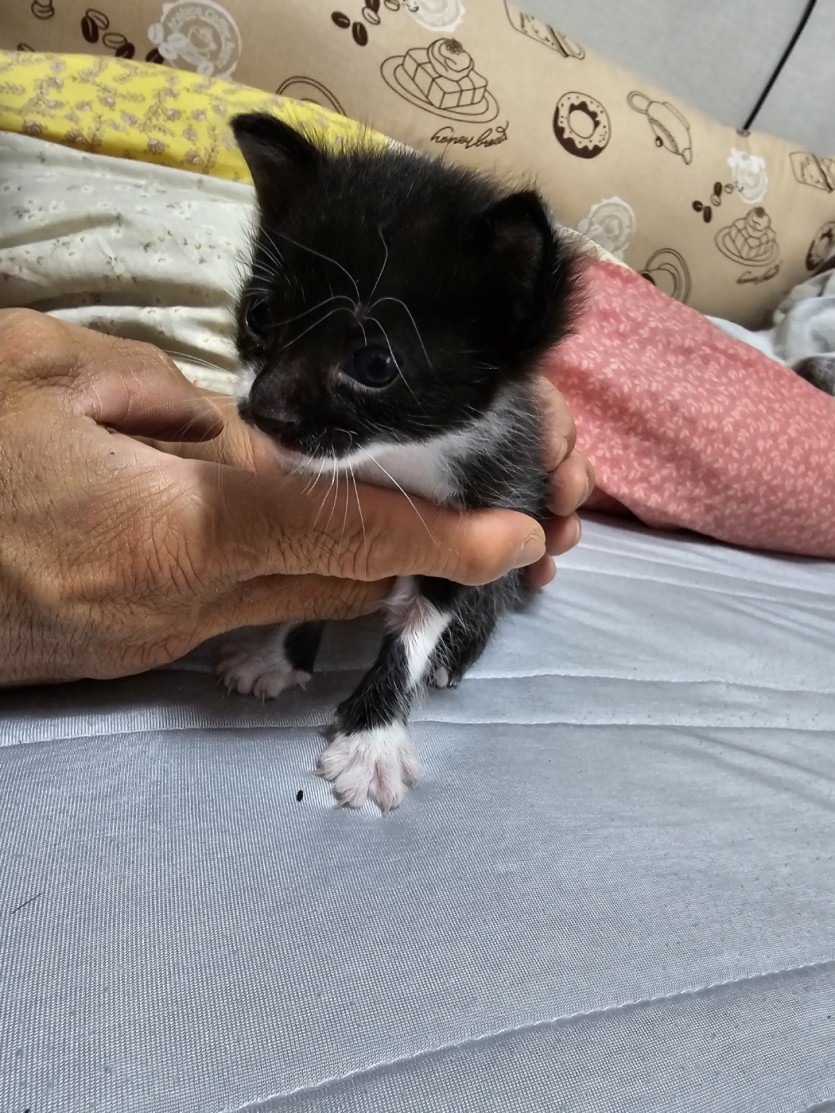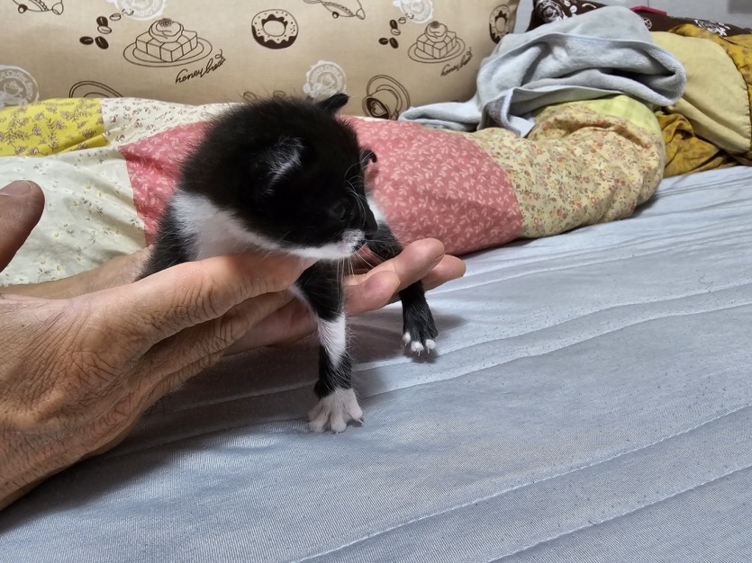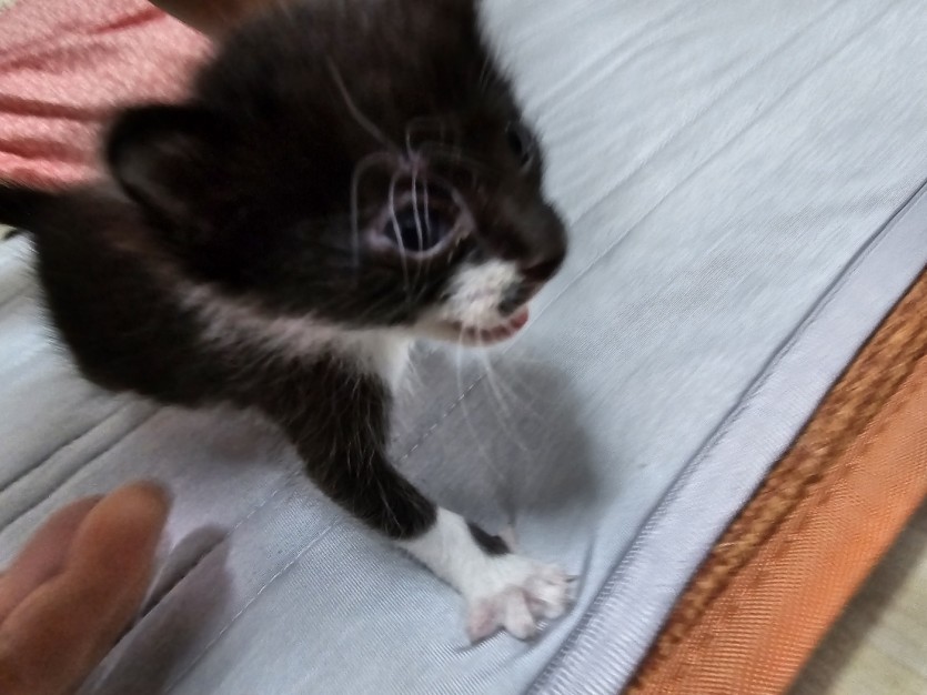 집 근처에서 우는 고양이 구조해서 데리고 왔습니다 생후 2주정도로 보이고 수컷이고 건강하고 활발한 이쁜 냥이입니다 저희 집에 이미 3마리나 키우고 있어서 잘 키워주실분께 분양 원합니다 연락주세요