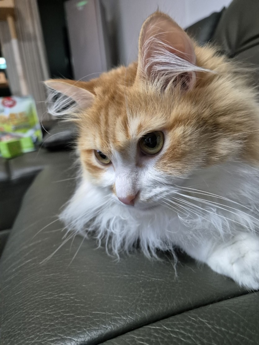 사람품을 좋아하는 아이입니다 예방접종 전부 다 맞췄고 중성화도 병원에서 권장하는시기에 진행했습니다