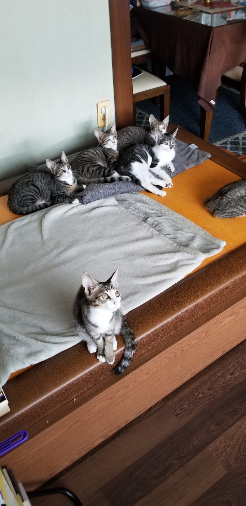 머리가 다친 고양이를 돌봐주고 있었는데.. 그만 임신을 해서 새끼 5마리를 낳았습니다.