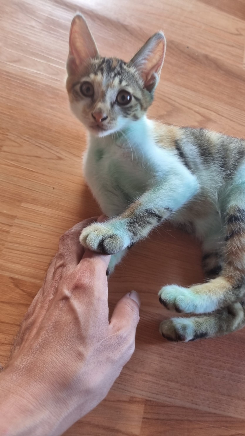 제가 길냥이 에게 밥을 주는데 새끼를낳아서2마리는 분양되고3마리 남았습니다.2마리는 3달째고,한마리는 1달쯤 안되었습니다.개냥이라 사람을 잘따릅니다.키우실 분만 연락주세요~