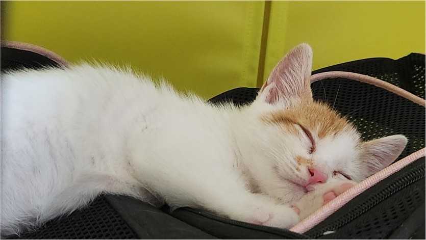 이동하는 캐리어 안에서도 기운없이 조용히 잠든 모습에 걱정을 많이 했는데, 현재는 병원에서 기력을 다 회복했습니다. 의사 선생님도 빨리 데려온 게 다행이라고 해주셨답니다.