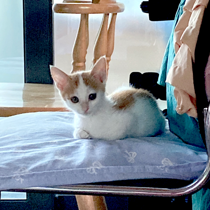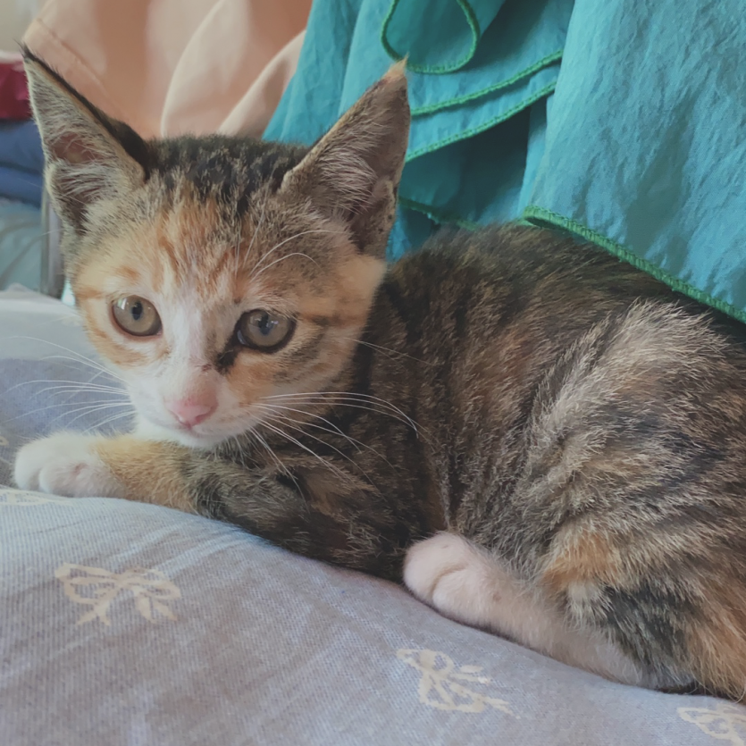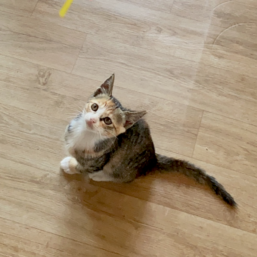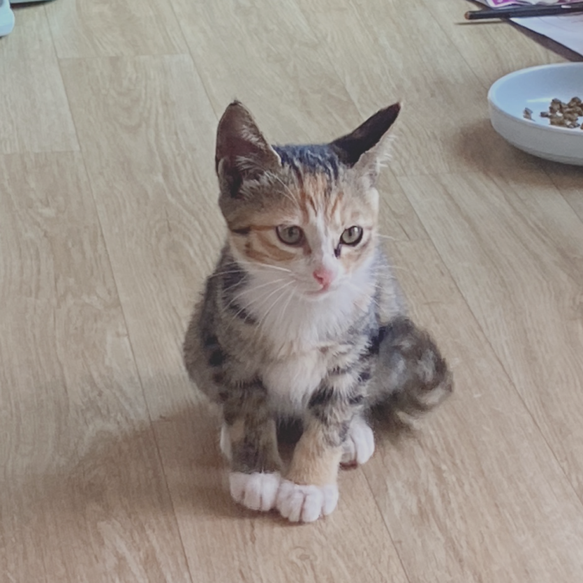 특징: 얼룩치즈, 호기심이 많아요, 식탐이 많아요, 겁이 없고 깨발랄아깽이예요!
