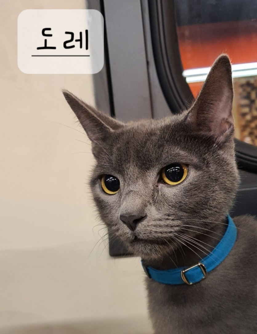 도레는 남자 냥이로 모든 면에서 우월한 냥입니다. 늠름하게 잘생기고 귀도 쫑긋합니다. 털색깔은 진하고 눈색깔이 다른 냥이들에 비해 노란 것도 특징입니다.