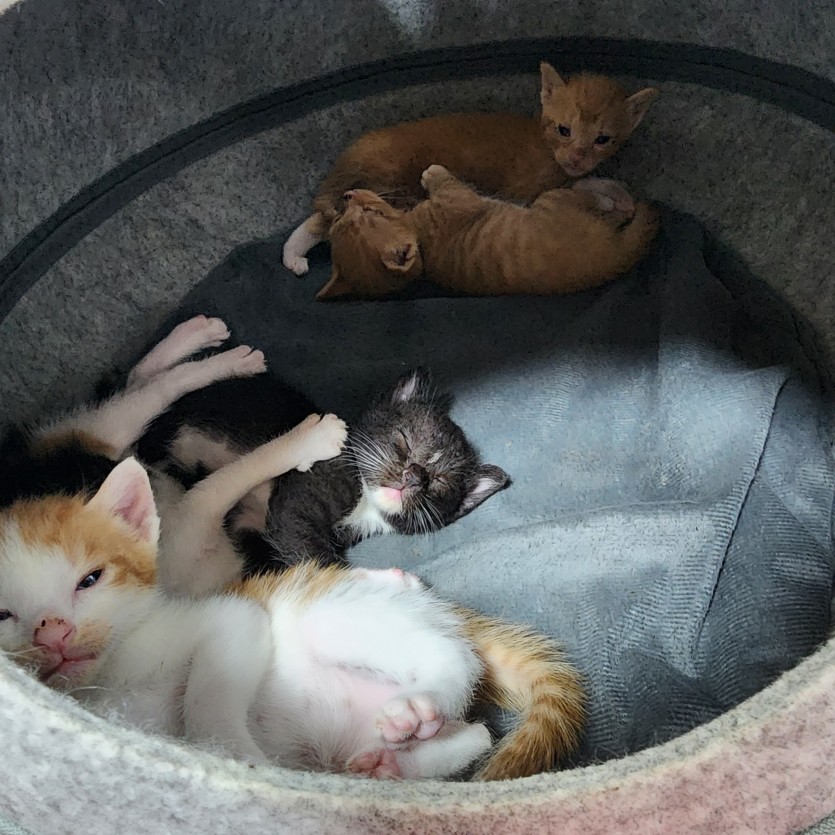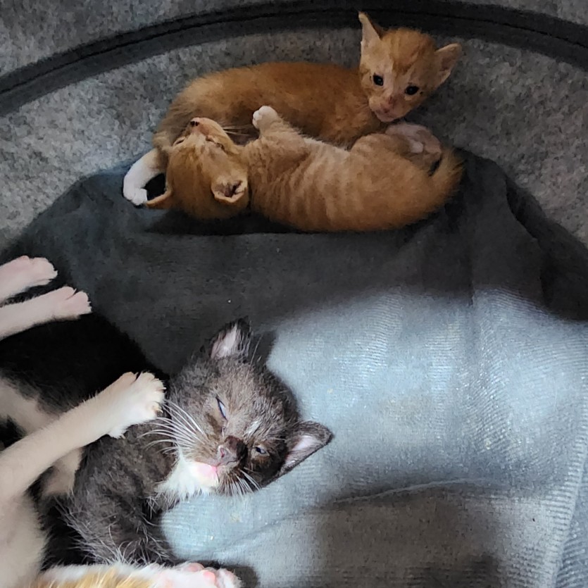 태어난지 28일 되었고 모두 건강하고 이빨도 나서 사료 조금씩 먹고있어요