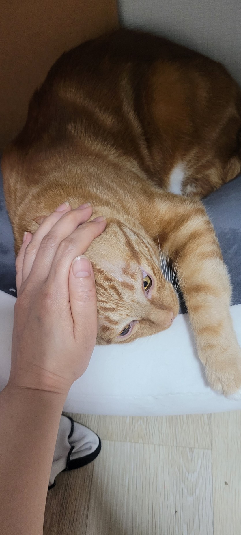 부끄럼이 많아 일주일은 숨숨집이 필요하지만 2주차부터 먼저 다가와 애교피는 개냥이예요.