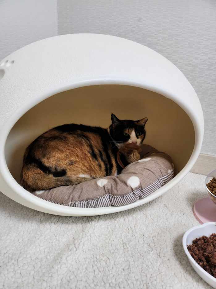 삼색냥 봄이는 겁이 조금 많지만 엄청 순둥이에요~ 너무 순하다 보니 별명이 곰이랍니다 ..