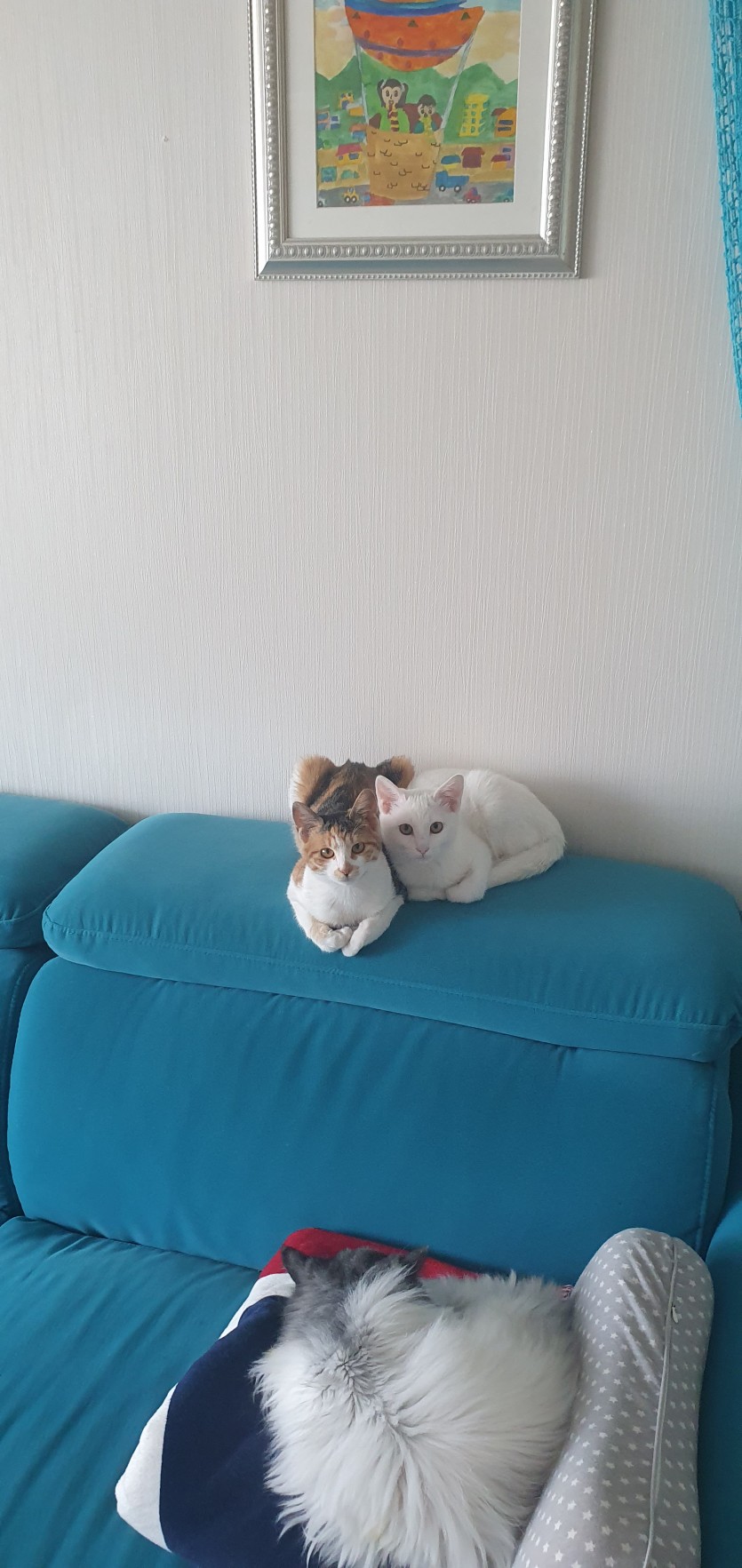 지난 겨울에 지인의 캠핑장에서 새끼때 구조했습니다. 저희집 17살 냥이가 요즘 좀 아픕니다. 그리고 아깽이들을 피해다녀요. 동물병원에서도 인정한 미묘인데 둘이 너무 끈끈해서 그런지 사람손을 잘 안터더라구요. 둘이서는 죽고 못삽니다. 24시간 붙어있어요.