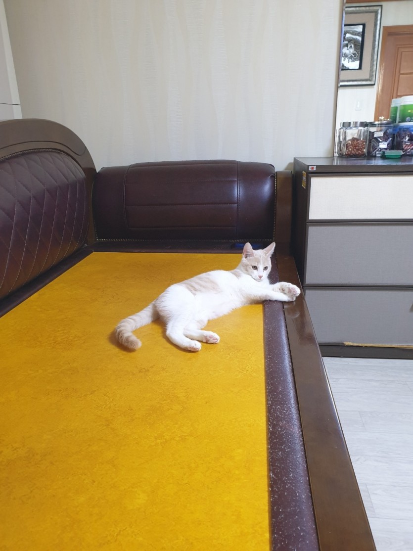 길냥이 아기때 쫒아와 키우게 된지 4개월 되었고
