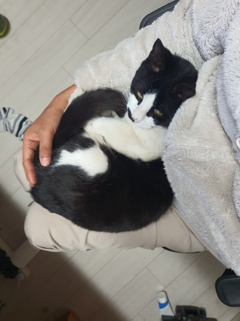 ㅇ 성별: 남(턱시도, 4키로, 12개월 추정, 중성화 완료, 귀진드기없고, 아주 건강함)
