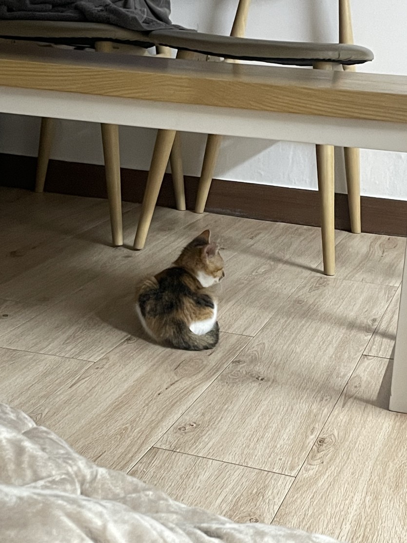 안녕하세요! 처음에 직장 계단에 혼자 가만히 앉아있길래 어미가 없는것 같아 데려왔습니다