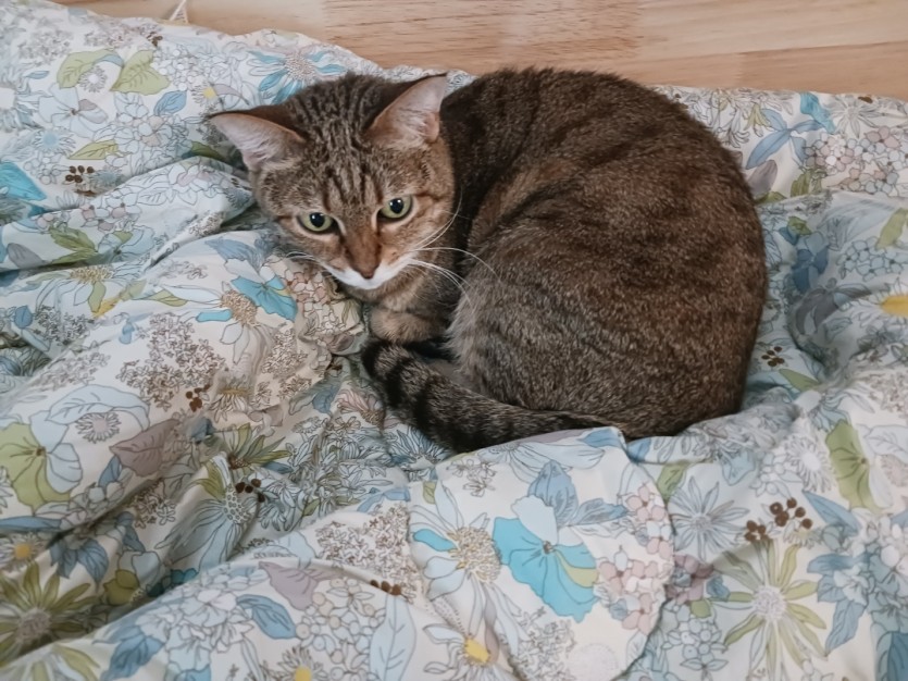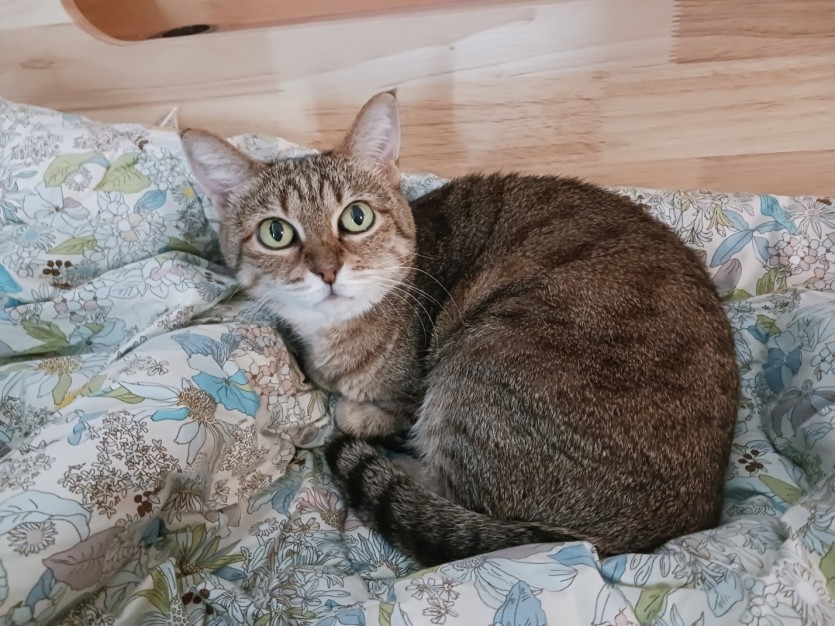 나이는 12세, 종류 뱅갈, 암컷 중성화 되었음, 누군가 아파트 계단에 두고 갔고 키울 여력이 없어 잠시 데리고 있습니다