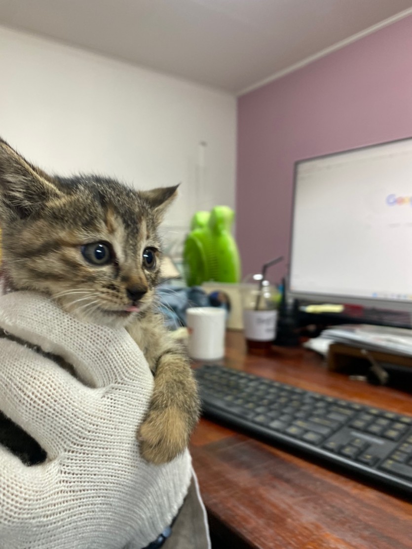 태어난 지 한 달? 조금 넘어 보이고요 성별은 암컷입니다.