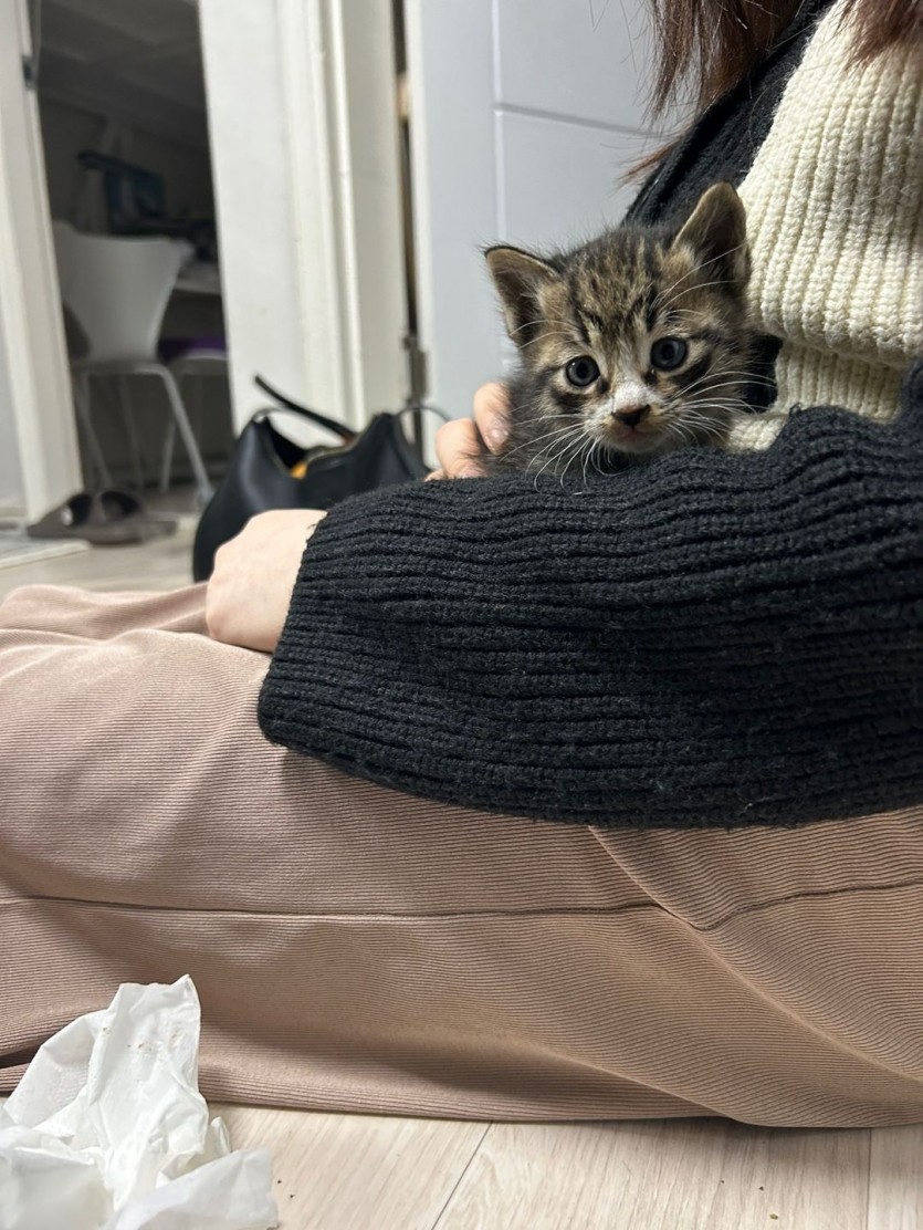 길에서 배고파서 나뭇잎 주워먹을려고 하는거 오들오들 떨고 어미 고양이도 없어서 데려왔어요