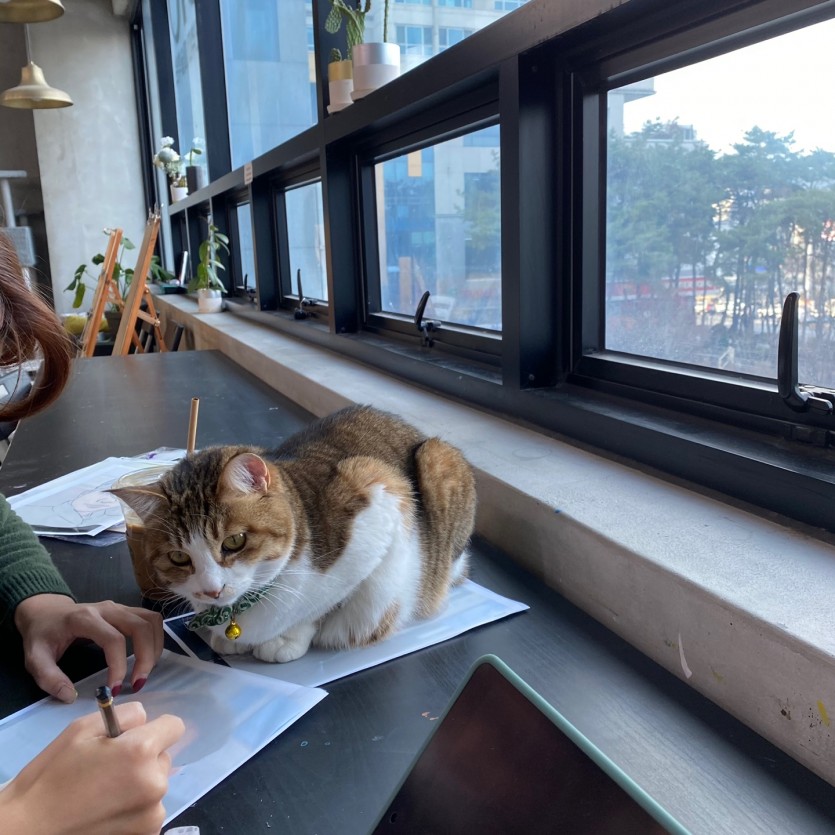 어렸을 때부터 수강생들에게 이쁨을 많이 받아 사람들을 너무 좋아하고 개냥이 입니다