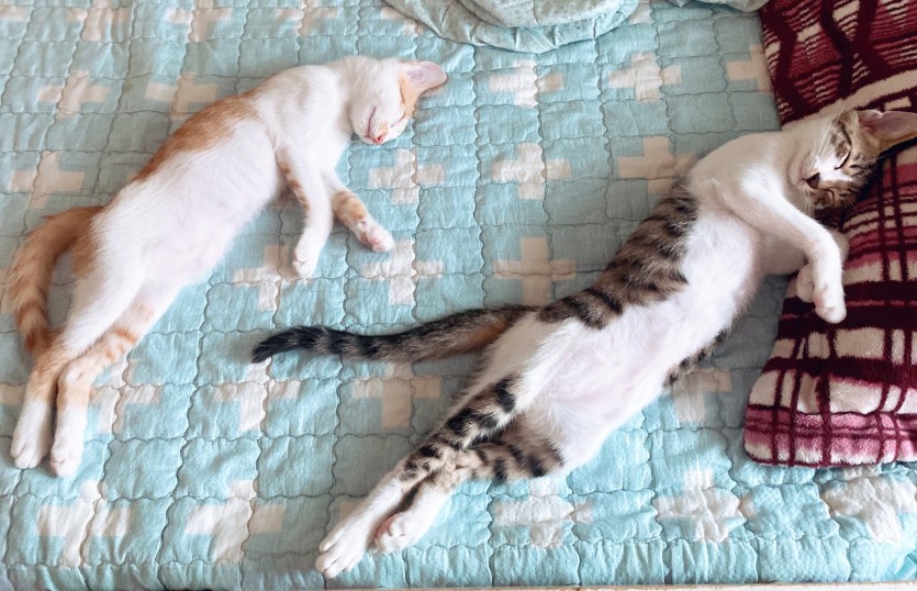 두 아이 다 사료는 자율배식했으며 양 조절을 잘 하는 편입니다