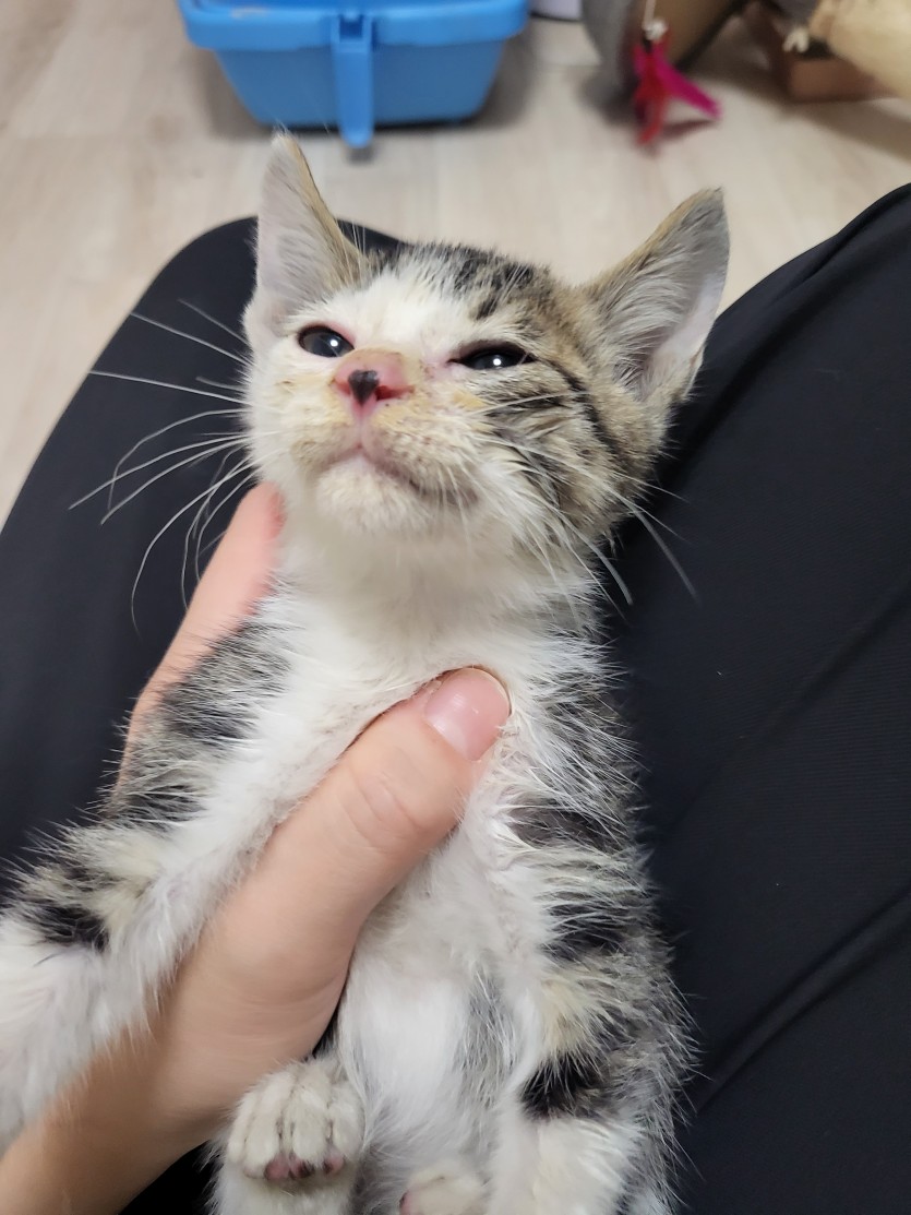 태어난지 한달도 되지 않은 아기 고양이 입니다.