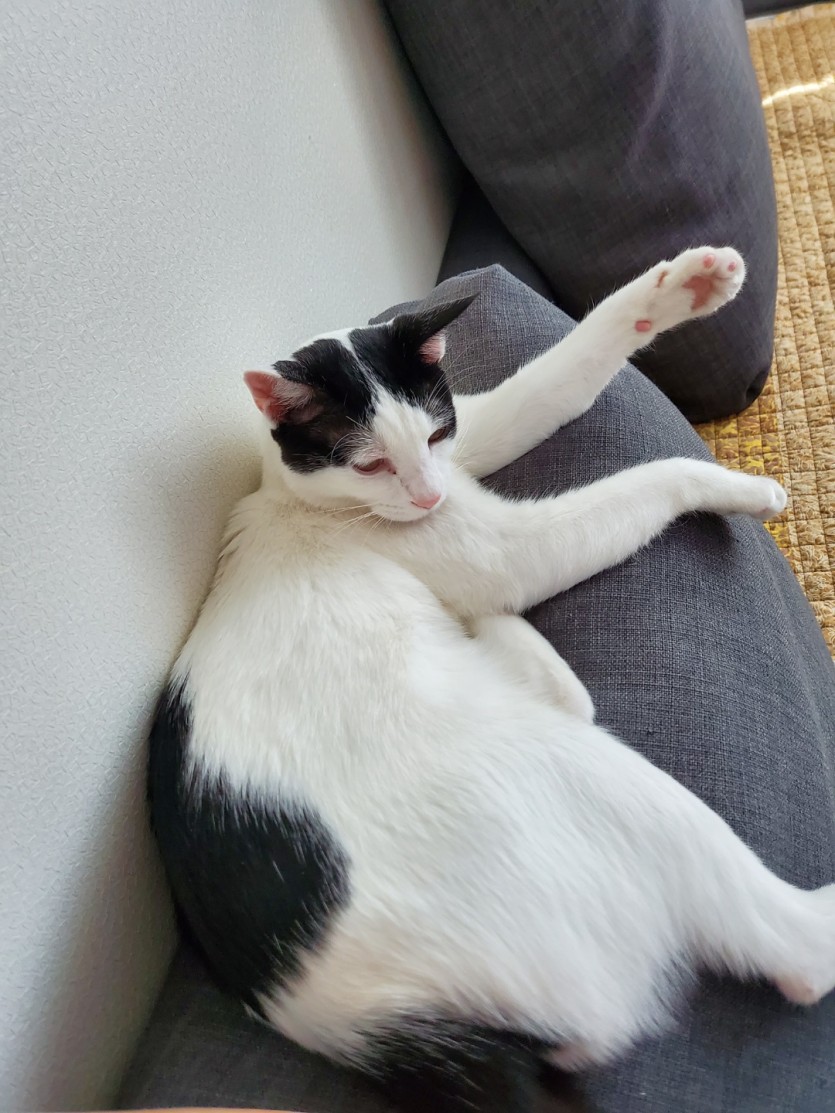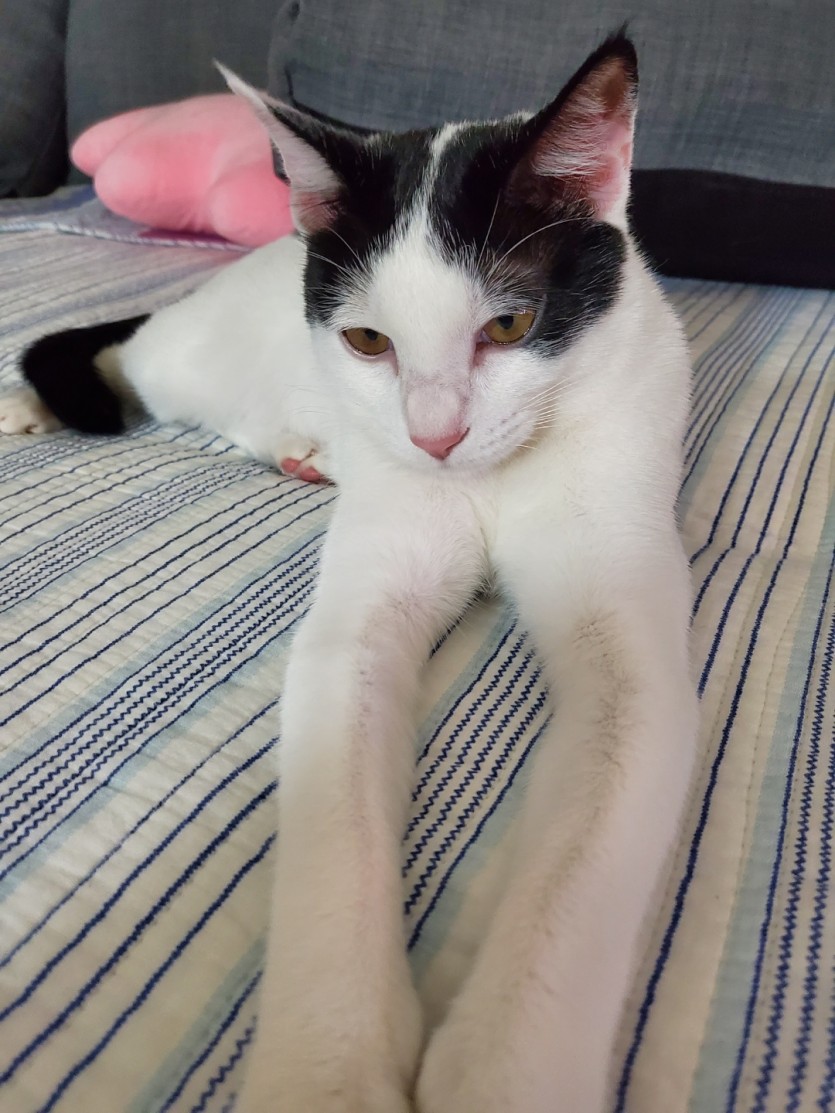 새끼때부터 키운 암컷 길고양이입니다. 2살정도 되었고, 중성화수술도 했고 예방접종도 하였습니다. 애교가 많아 완전 개냥이예요.