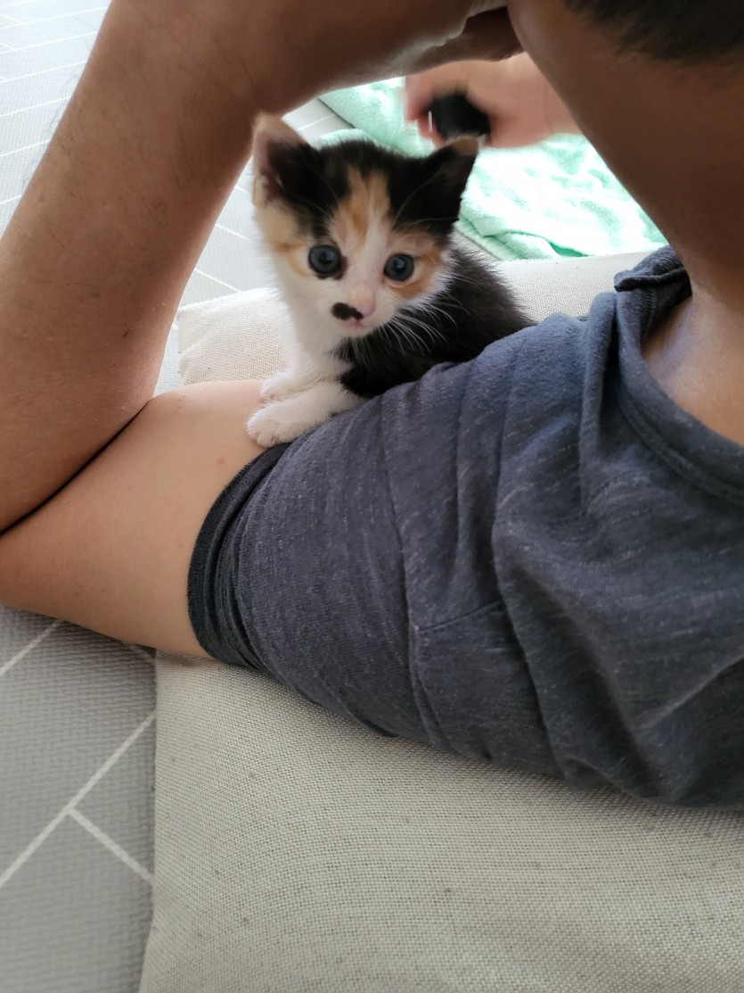 시골버스정류장에 박스에. 담겨서 형제들과 함께 버려져있어서 보호중입니다.병원에서는 건강하다하셨고 배변 잘가리고