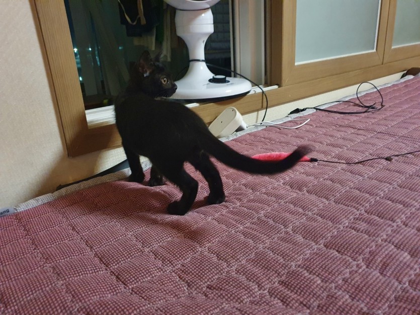 길고양이 1개월 됬을때 대려왔어요 바로 병원갔는데 1kg가 안되서 접종 못했어요