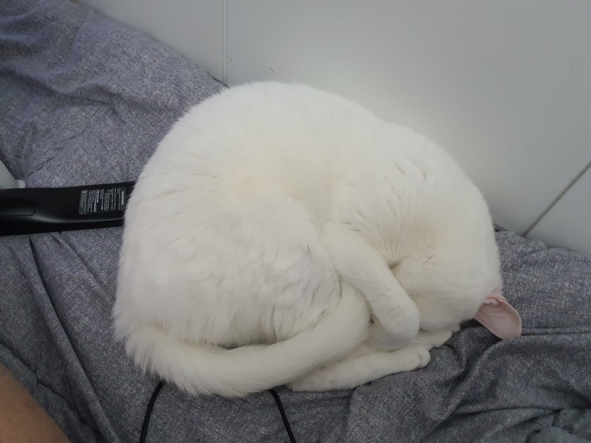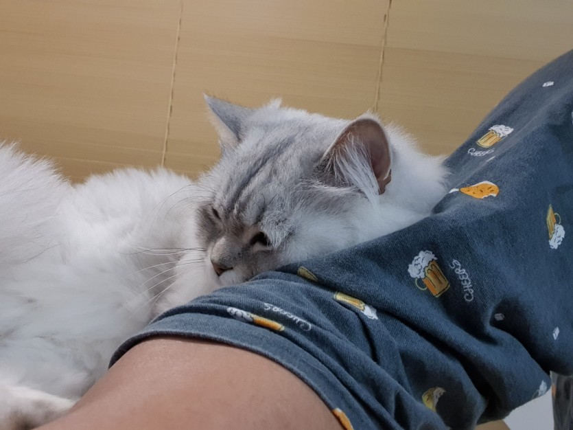 ○ 달콤 (터키쉬앙고라, 여아, 15년 3월생, 중성화 완료) : 사람 발 밑에서 뒹구는걸 좋아하는 애교쟁이 개냥이입니다.