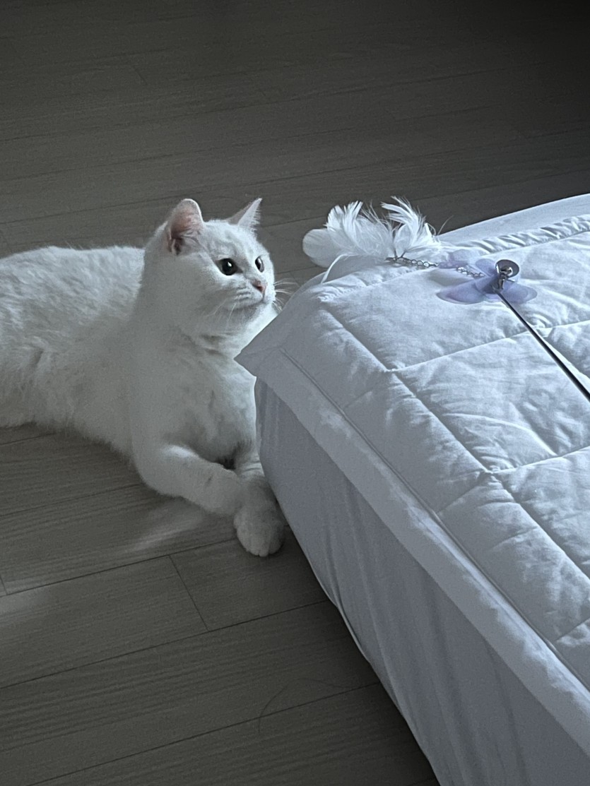 창문 바라보기를 좋아하고 낚시 장난감을 매우 활발하게 좋아하는 편입니다.