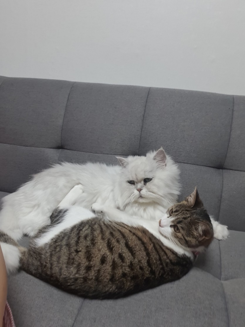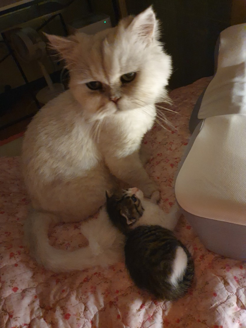 성격은 아주아주 온순하고 하악질 한번 한적없고,집에서미용가능할정도순해요, 동물보단 사람을 아주좋합니다. 사람꾹꾹이를 좋아한답니다.