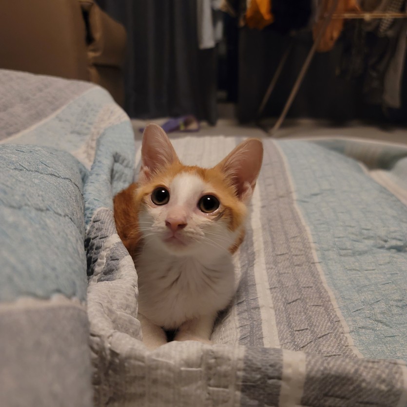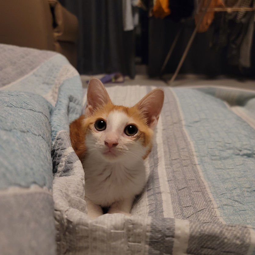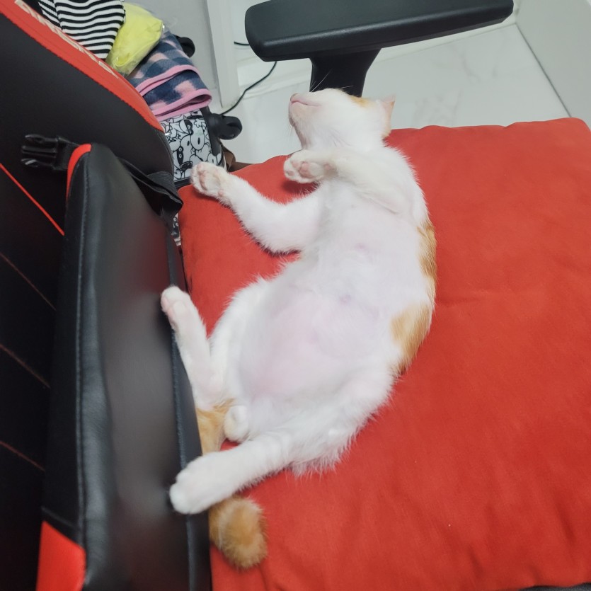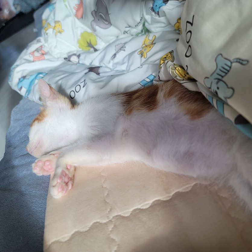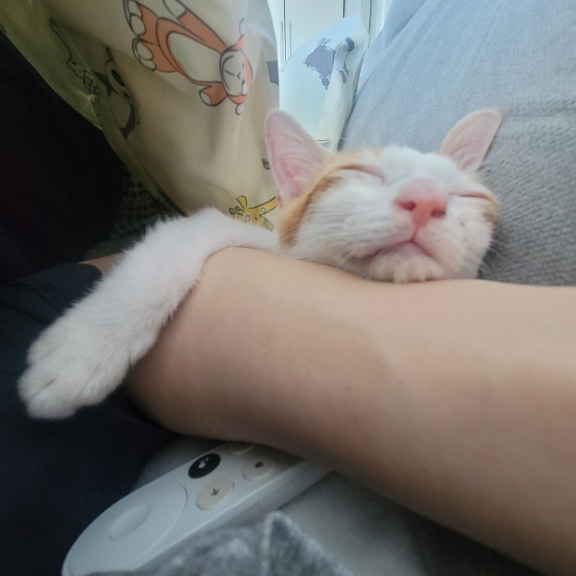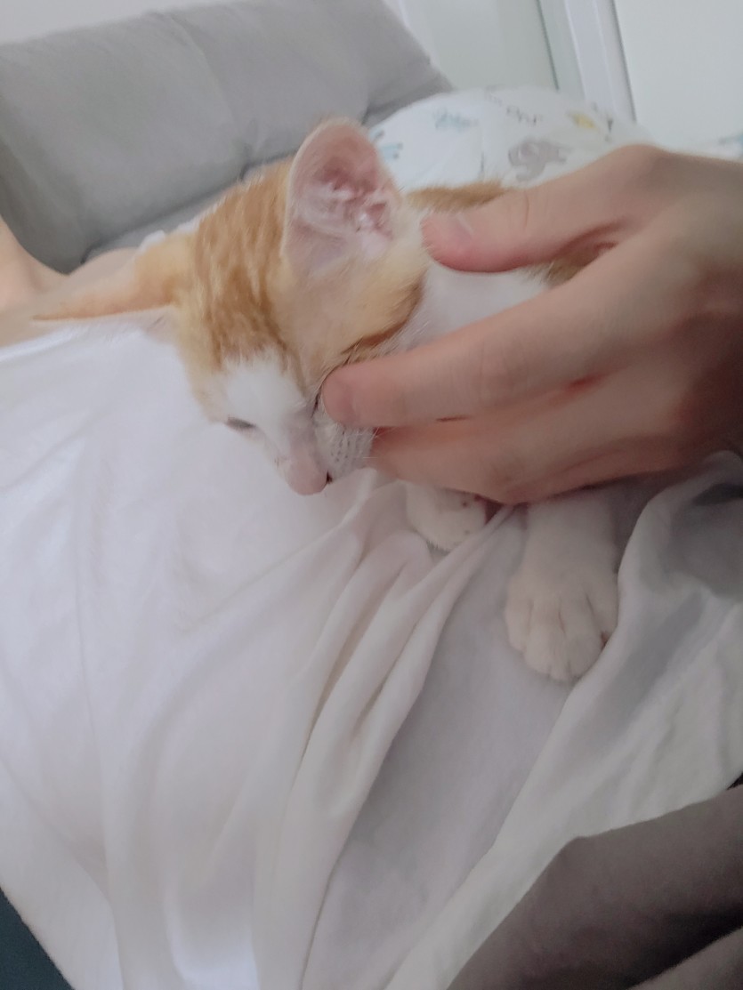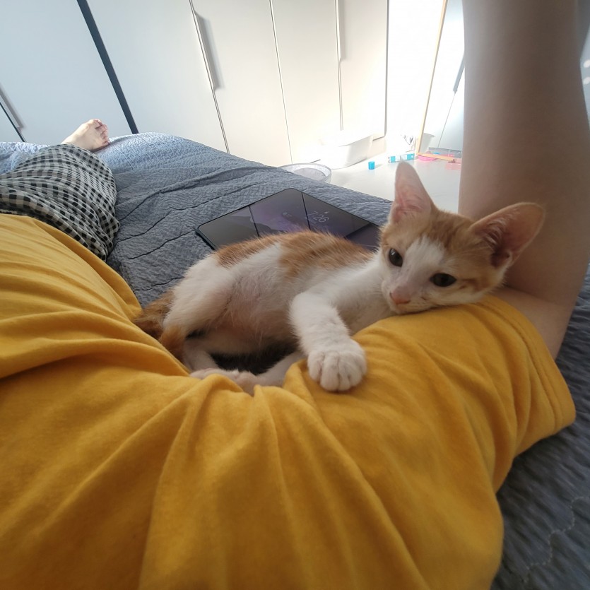 접종은 1차만 완료했고 수컷 입니다. 집사 무릎위에서 자는것을 좋아하고, 잠올때 얼굴 마사지하면 좋아합니다