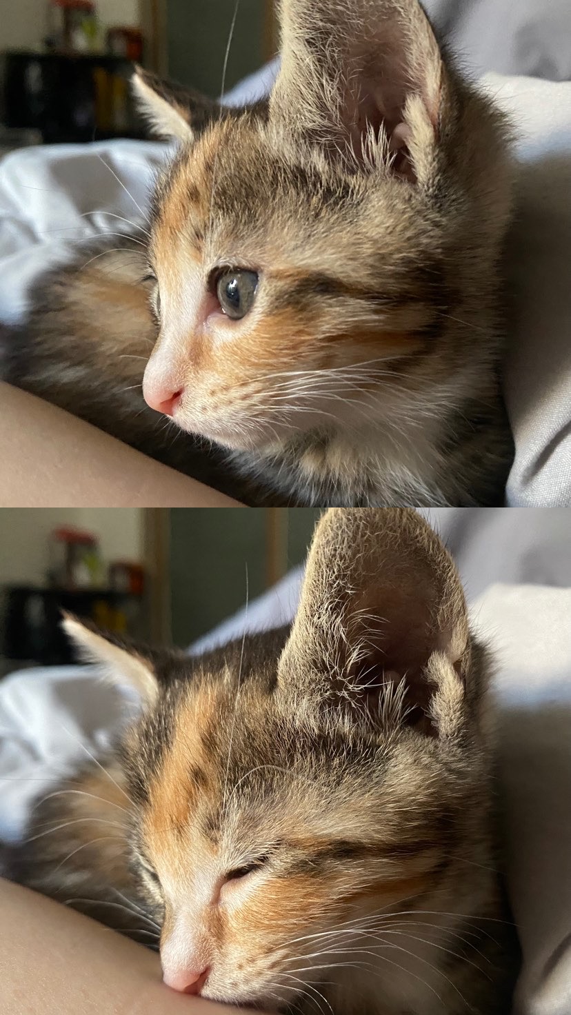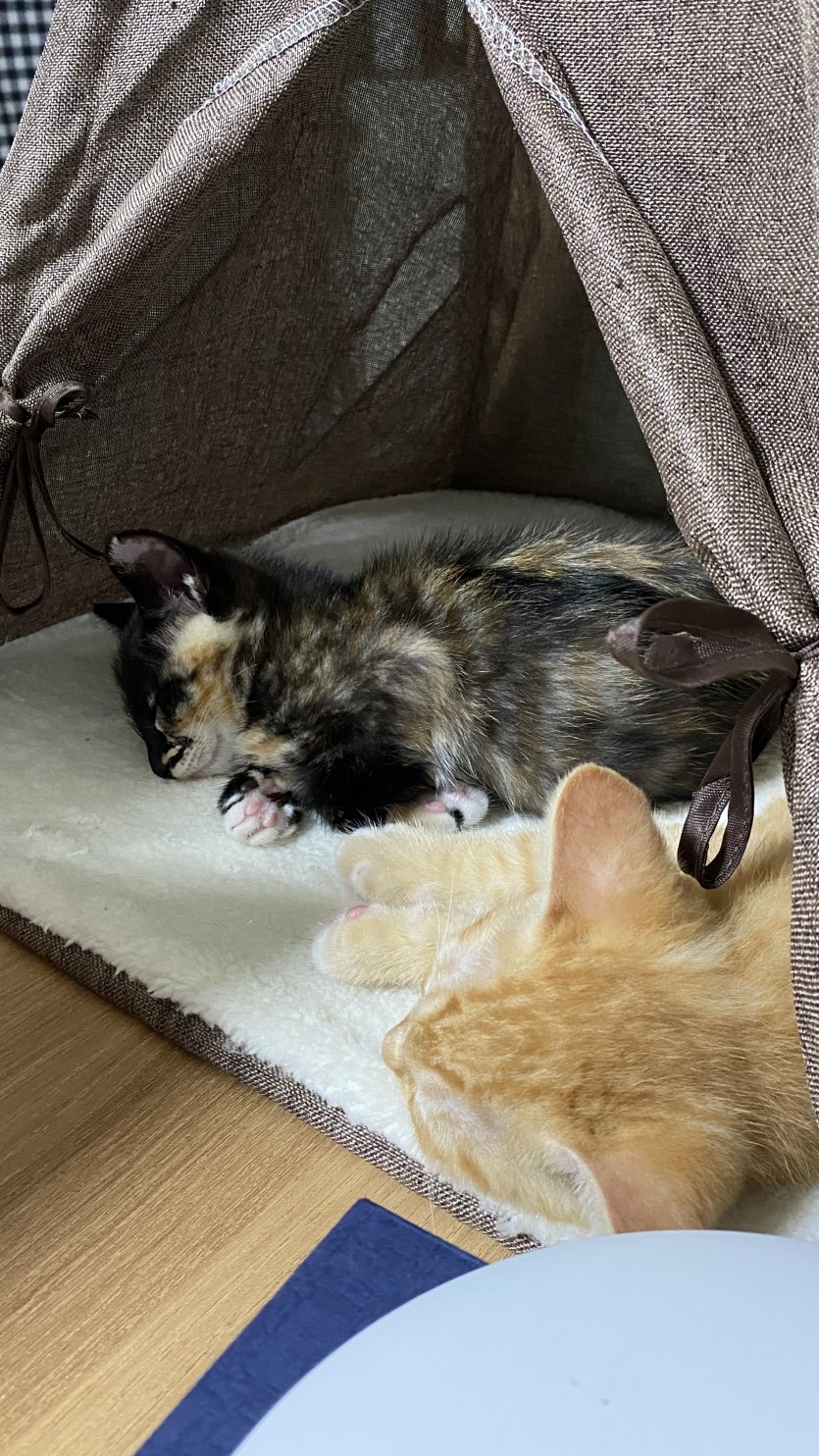 4월 꽃샘추의에 밥을 주던 애교쟁이 길냥이가 쓰레기더미에 아가들을 낳았고,집에 데려온 지 2~3개월 되었습니다!