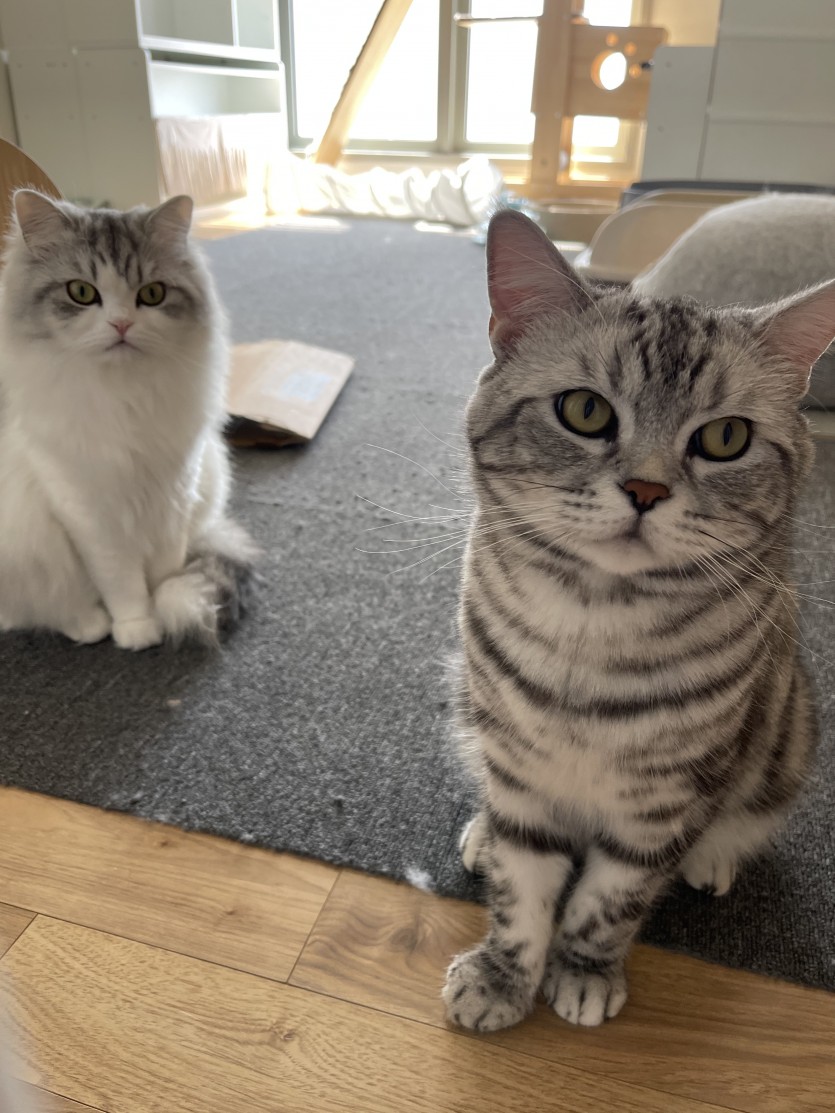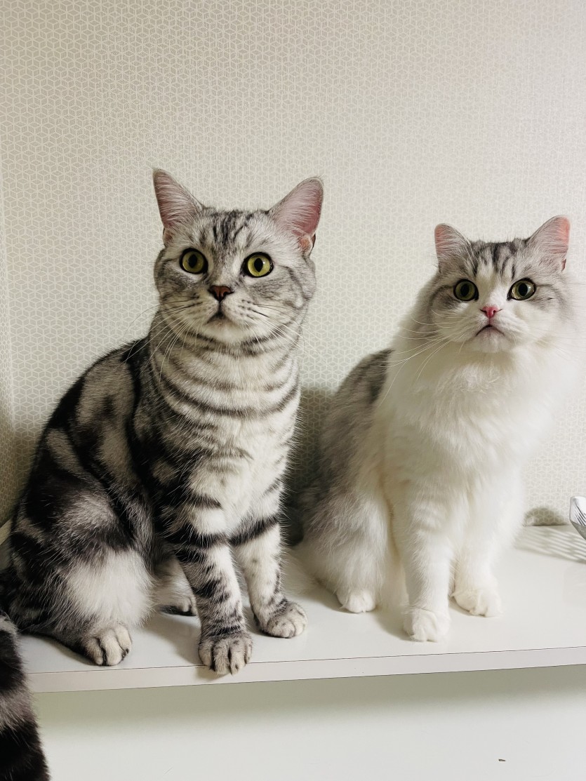 19년 10월생 아메리칸 숏헤어랑 19년 11월생 페르시안 둘 다 수컷이고 예방접종 및 중성화 수술 완료된 상태입니다. 페르시안은 완전히 강아지처럼 사람을 따르고 아메숏은 조금 개인주의지만 젠틀한 편입니다. 둘 다 엄청 순한 편이고 페르시안은 사람에게 안기는 걸 좋아합니다. 새끼 때부터 두 마리 다 같이 자라서 두 마리 한번에 분양 받으실 분만 연락주세요. 개인 사정으로 이사를 자주 다녀야 하는 상황이 생겨서 분양합니다. 사랑으로 키우실 분에게 분양해드리겠습니다. 기본 용품들은 저희에게 있는 것들 모두 전달해드리겠습니다.