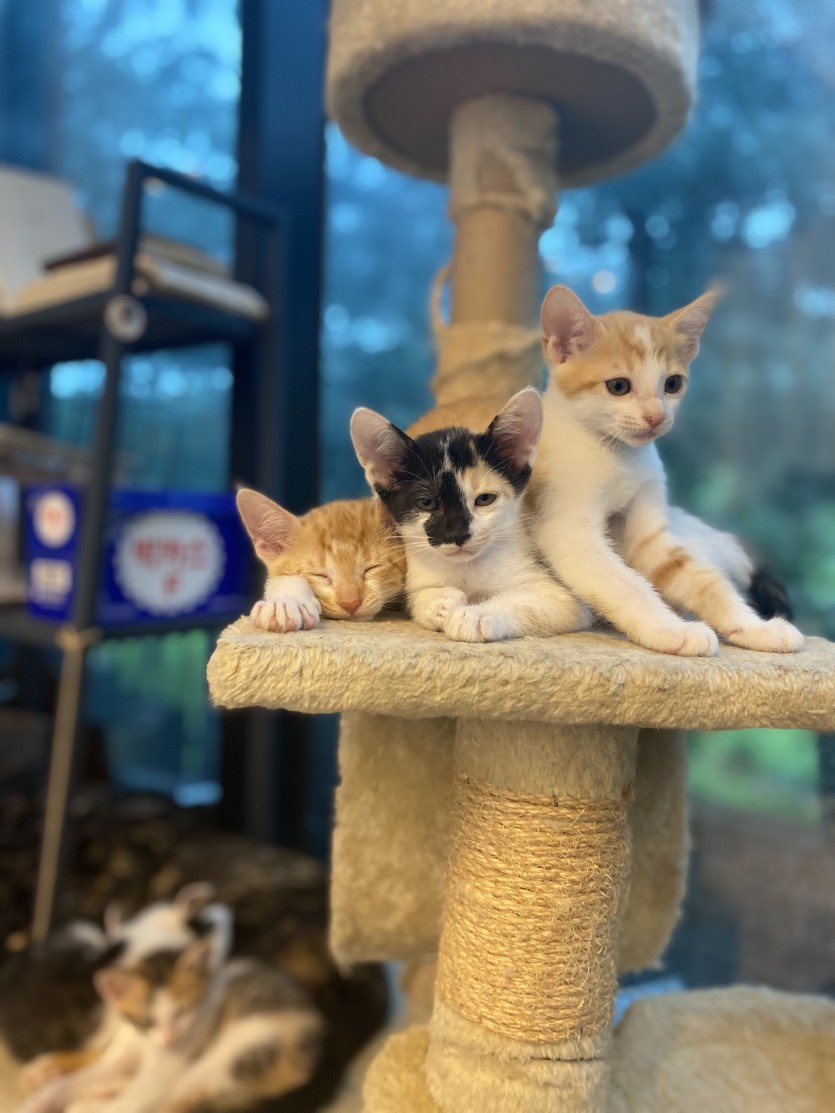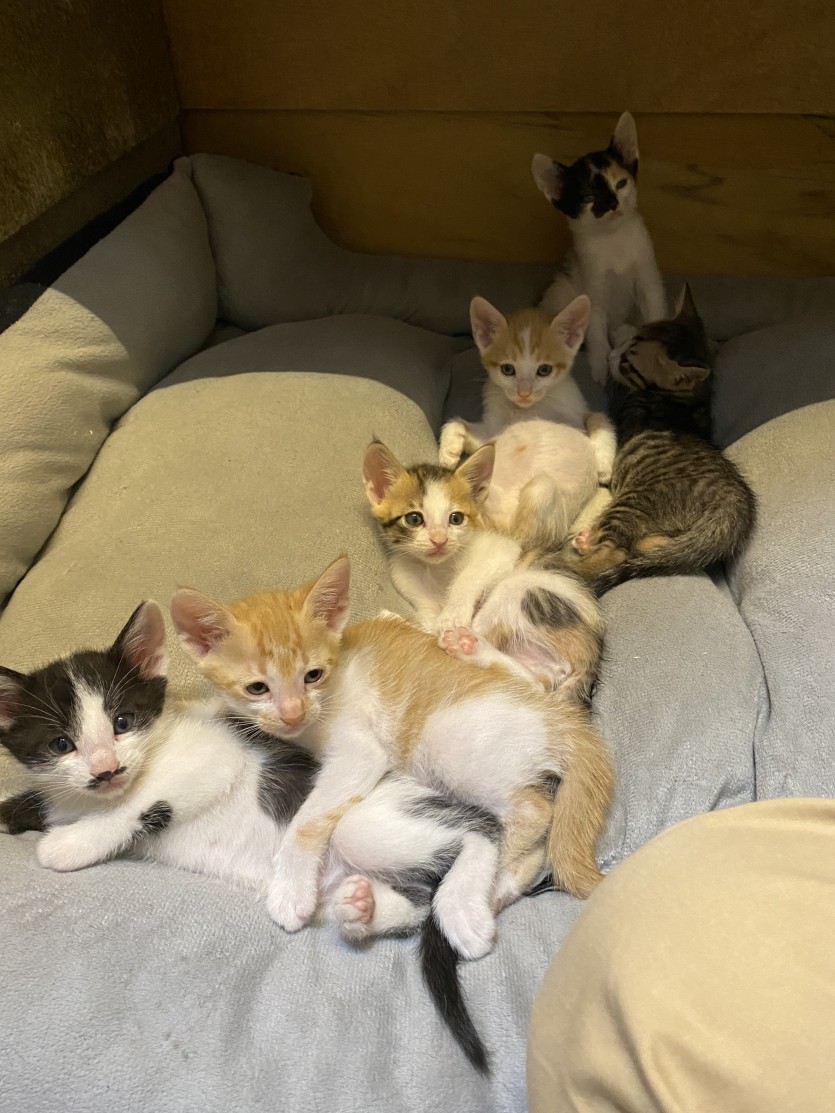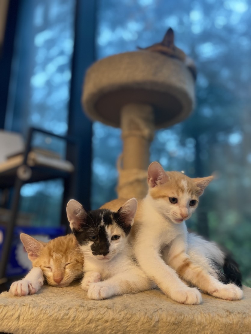 엄마가 젖을떼서 이제 새끼냥이들은 알아서 사료도 잘먹고