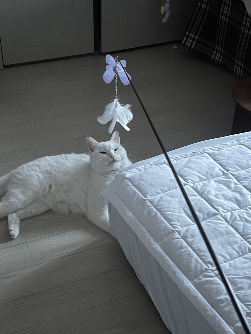 창문 바라보기를 좋아하고 낚시 장난감을 좋아하는 매력적인 편입니다.