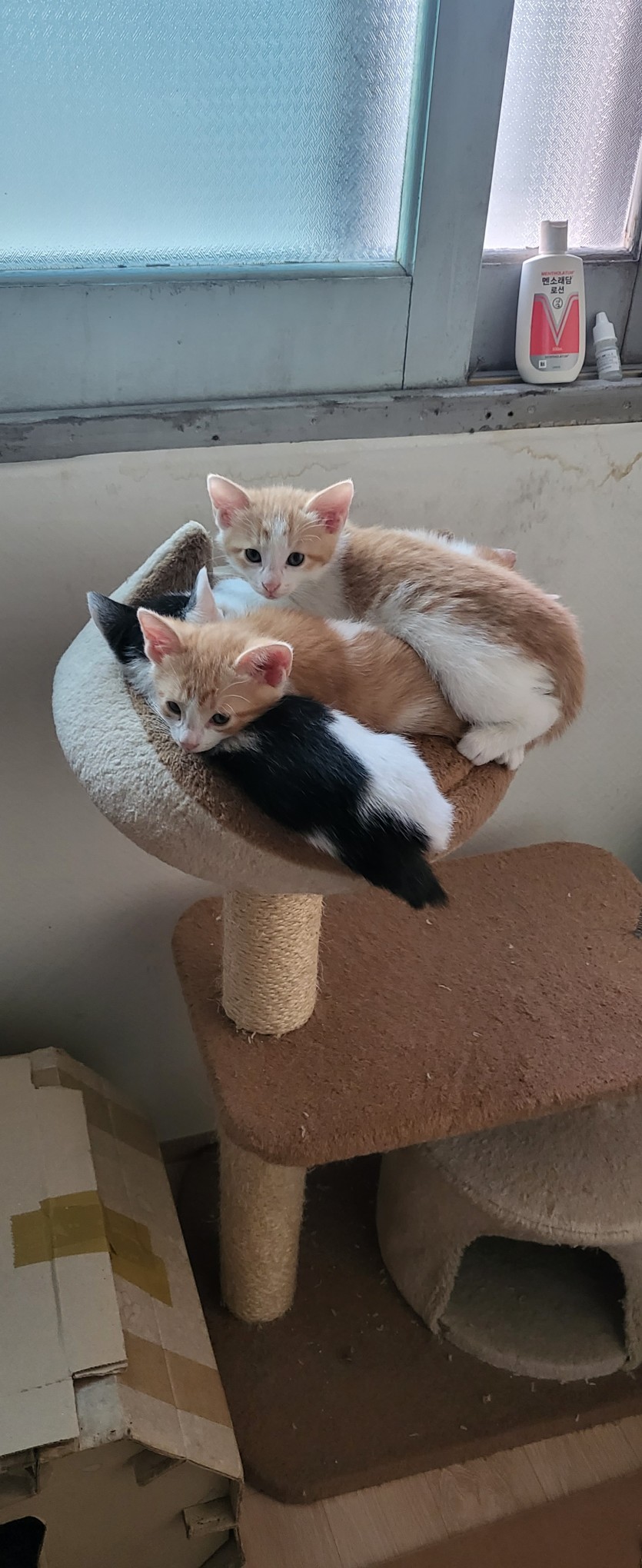 수컷 중성화 예약 잡아놨는데 그 사이에 아기가 생겨버려서 4마리중 2마리는 보냈으나 2마리가 분양이 너무 안되네요ㅠ 둘 다 착하고 사람 좋아해요~~ 깜장이는 중성화 완료 했습니다!! 데리러 와 주실수 있으면 좋겠습니다. 지역은 부천 입니다!!