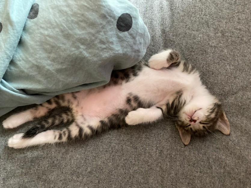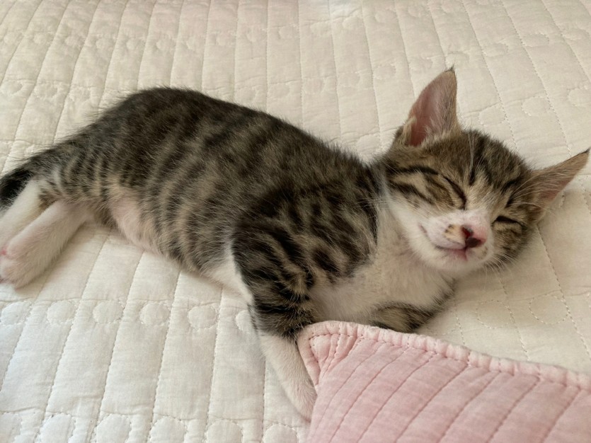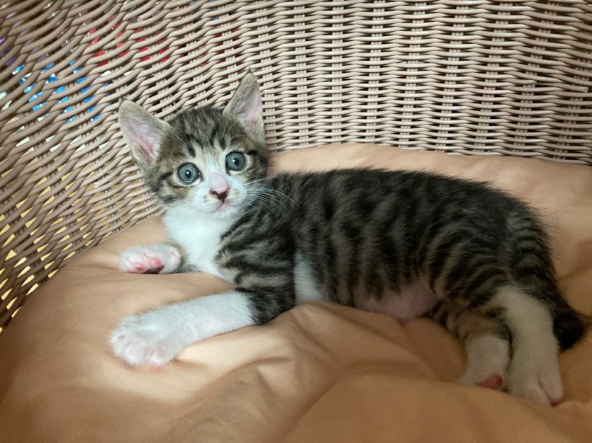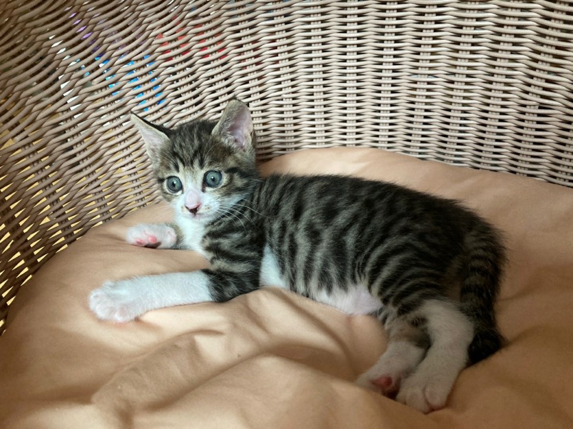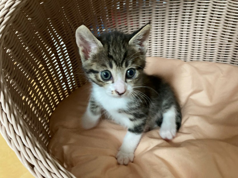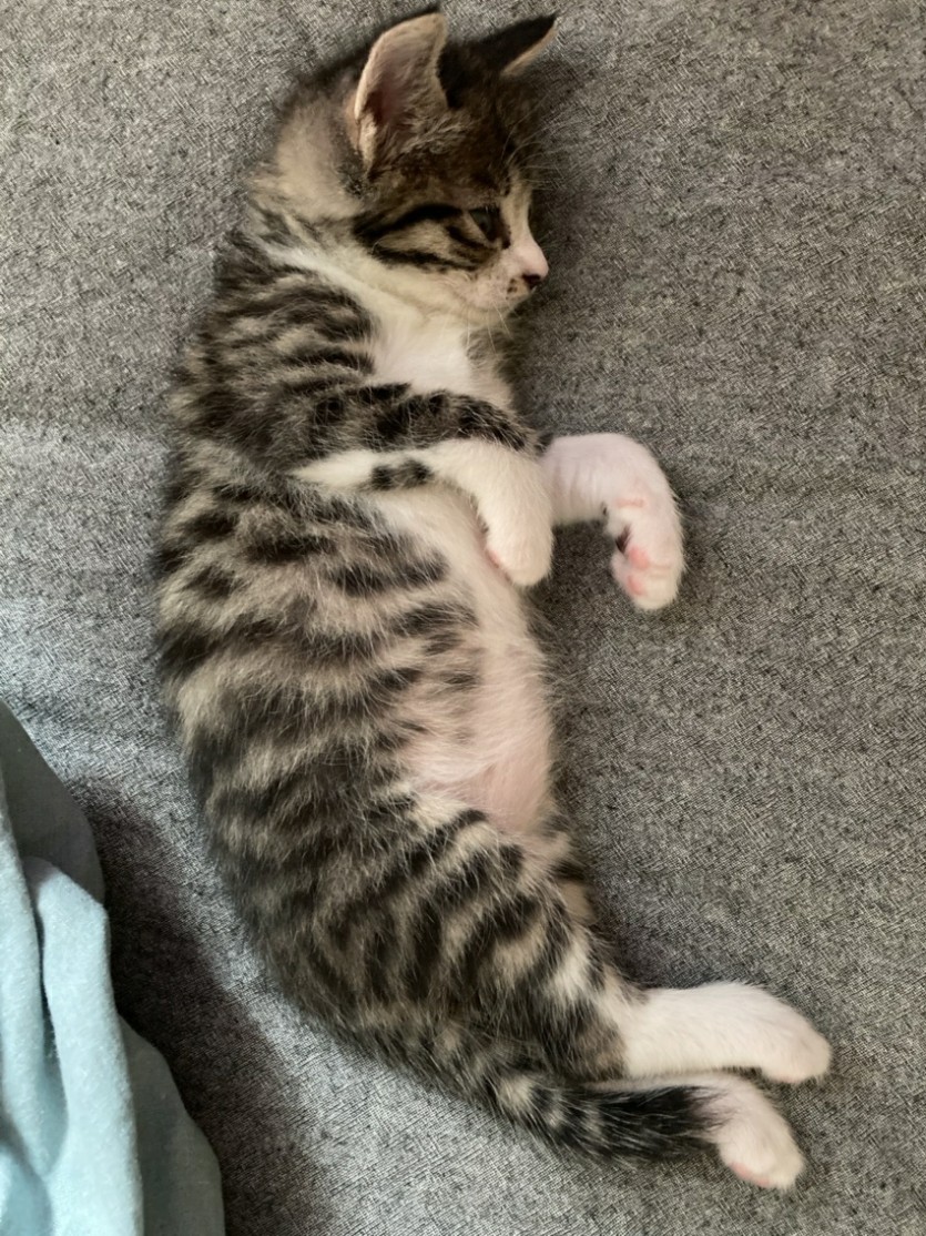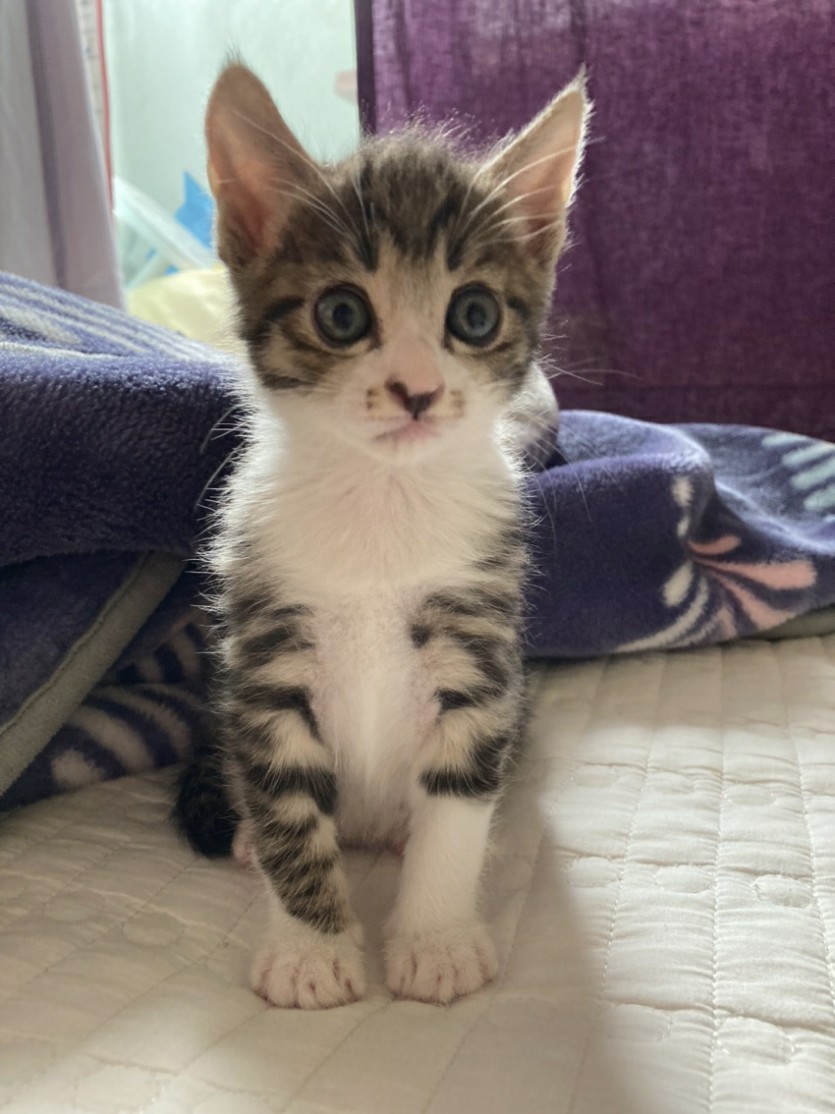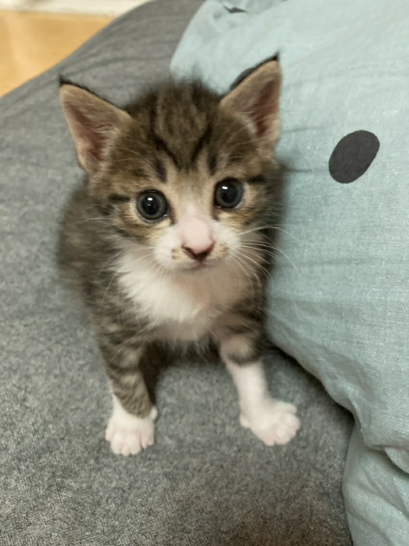 처음엔 60그램 정도의 약한 아이였는데 이제 아주 건강한 아기냥이가 되었습니다