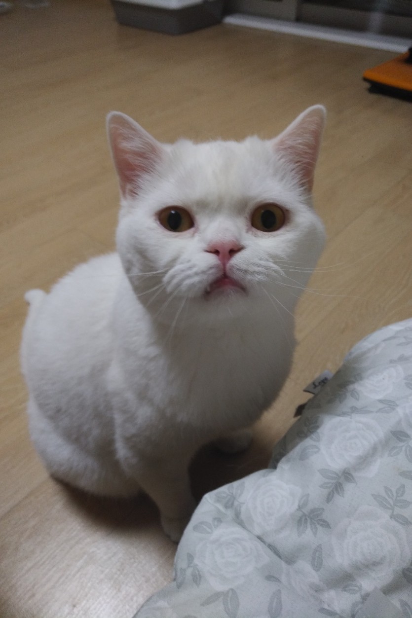 매우 순한 스코티쉬 스트레이트 고양이입니다. (수컷, 중성화 완료) 사람을 좋아하고 절대 할퀴지 않습니다. 발톱을 깎아주지 않아도 벽이나 가구, 사람 등을 할퀴는 일이 없어요. 그리고 아주 똑똑해서 사람이 싫어하는 행동은 하지 않으려 해요. 고양이 사료와 고양이 간식 외에 사람 음식에는 관심이 없습니다. …