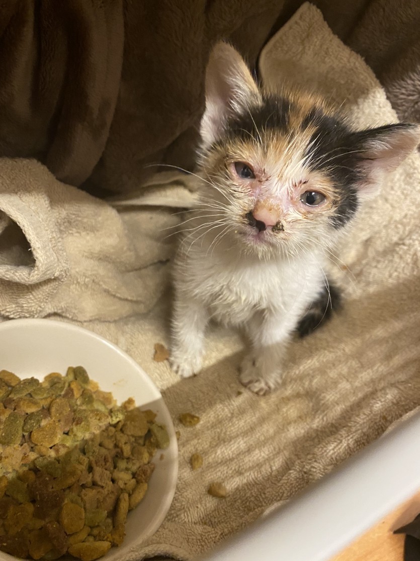 제목 그대로 태어난지 3주로 추정되는 삼색태비 여아 입보중입니다