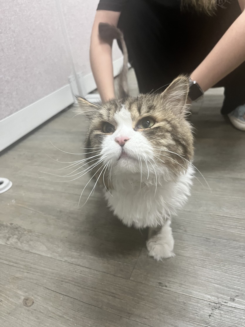 가정에서 자랐던 고양이같아요! 성격도 온순하고 사람 잘따르고.. 사무실에서는 더이상 봐줄수가 없어 좋은곳으로 보내려합니다! 화장실,캣타워,사료 다드려요!