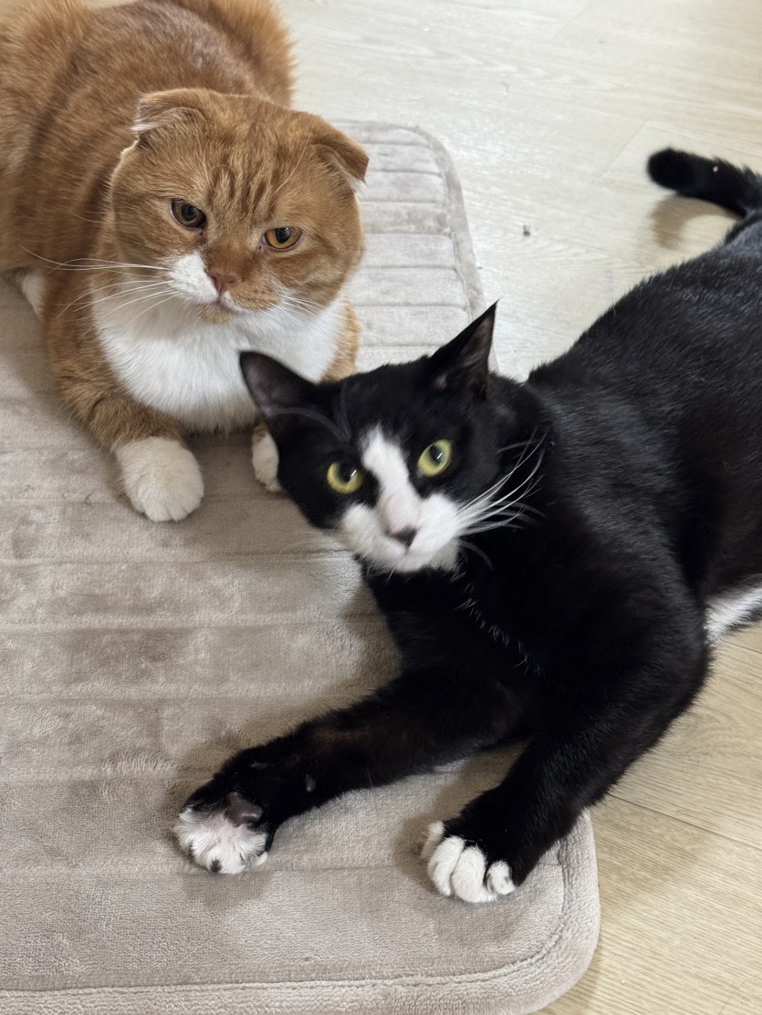 스코티쉬폴드 수컷 장화신은 고양이 닮은 아이 이며 사람을 무척조ㅗ아해요 코리안숏헤어는 암컷인데 겁이 많은아이에요 ㅠㅠ제가 이사를 ㅎ하는데 ㅠㅠ 이사하는곳이 고양이 안된다해서요 ㅠㅠ 둘다 중성화되었구요 스코티쉬폴드는 4년됬고 코리안숏헤어는 3년됬어요
