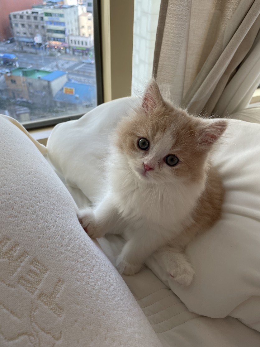 장기간 해외 출장을 가게되면서 키우기가 어려워져 올립니다. 130만원에 분양받은 예쁜아가에요. 먼치킨 4개월 남아구요 접종은 3차까지 마쳤습니다. 아직 아가라서 중성화는 안되었어요. 아픈곳 전혀 없고 사료 너무 잘먹고 아주 활발하고 건강해요. 사람 잘따르는 개냥이에요.