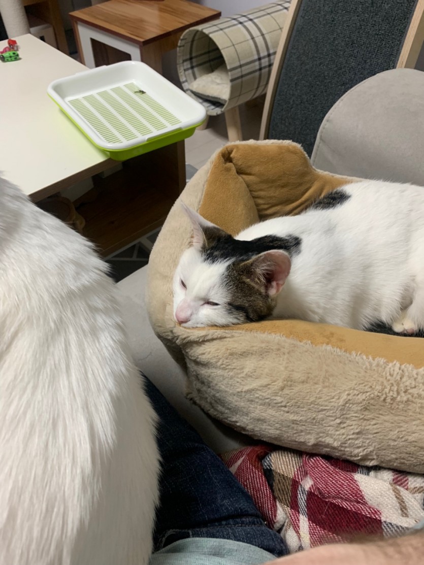 두마리 냥이의 엄마 입니다. 쿠키는 12/3에 왔는데 저희집 두마리와 지금까지도 합사가 전혀 되지않고 있어요 ㅠㅠ 저희집애들 나이가 8살이 넘어가면서 에너지 차이로 두마리가 힘들어 하는 중이라 아이를 입양보내기로 결심했습니다 ㅠㅠ