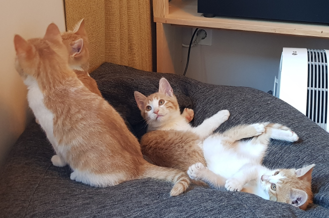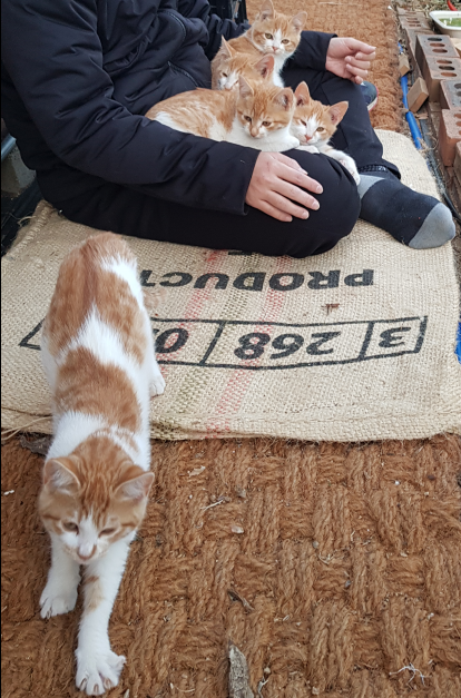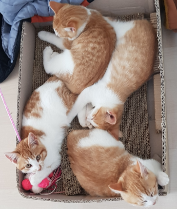 작년말에 어미고양이 한 마리가 우리 식구와 친해져서 금년 봄 온실에 5마리 새끼를 낳아서 잘자로 있는데
