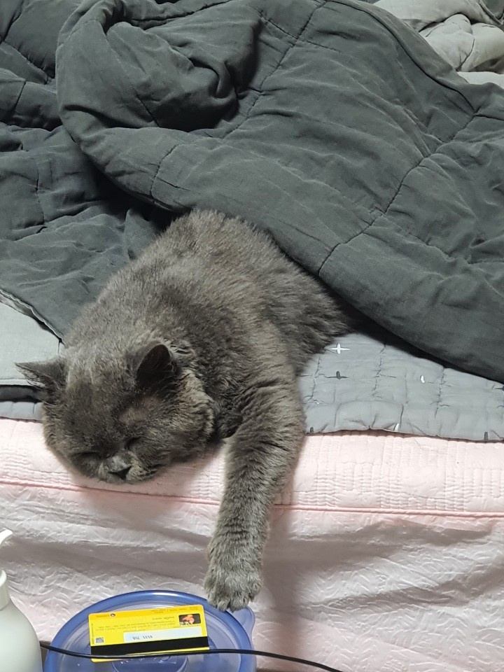 2. 만나게 된 인연: 펫카페에서 유기묘였던 먼지를 보았습니다. 먼지를 임시보호하고 계시던 분이 학생이셨고, 그때 당시 중성화가 안되어 있어서 혹시나 잘못될까 싶어 입양을 하게 되었으며, 병원에서 간단한 진료와 중성화를 하였습니다. 끝까지 함께 하고 싶었으나 개인사정으로 인하여 함께 지낼수 없게 되어 입양을 보냅니다. 그전 임시보호하던 집사님 말씀으로는 대학 원룸촌에서 음식물쓰레기를 물어뜯고 있었다고 하더라구요. 저랑 지내면서 주방을 뒤지는 습관이 계속 있었으나 간식과 습식캔 고양이 전용 사료로 습관을 들여서 이제는 주방을 뒤지는 습관이 없어졌습니다.