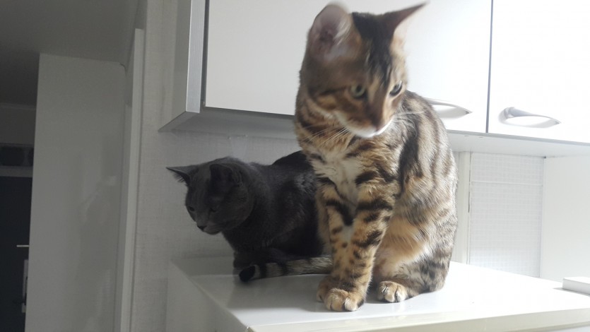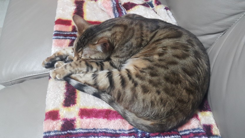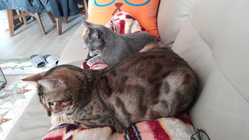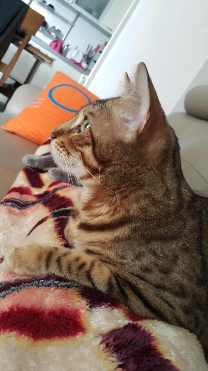 뱅갈 특유의 특징인 활동성과 놀이로 애교가 많습니다.
