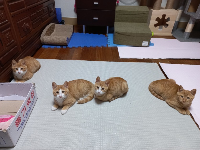생후 70~90일 정도인 남아 하나, 여아 셋 입니다.