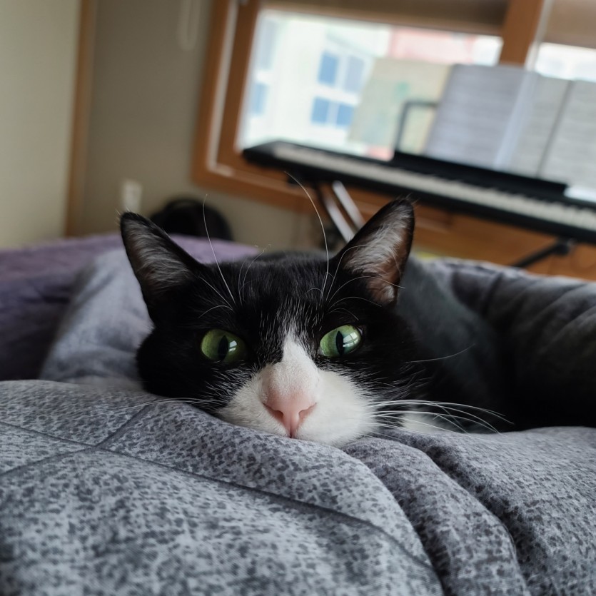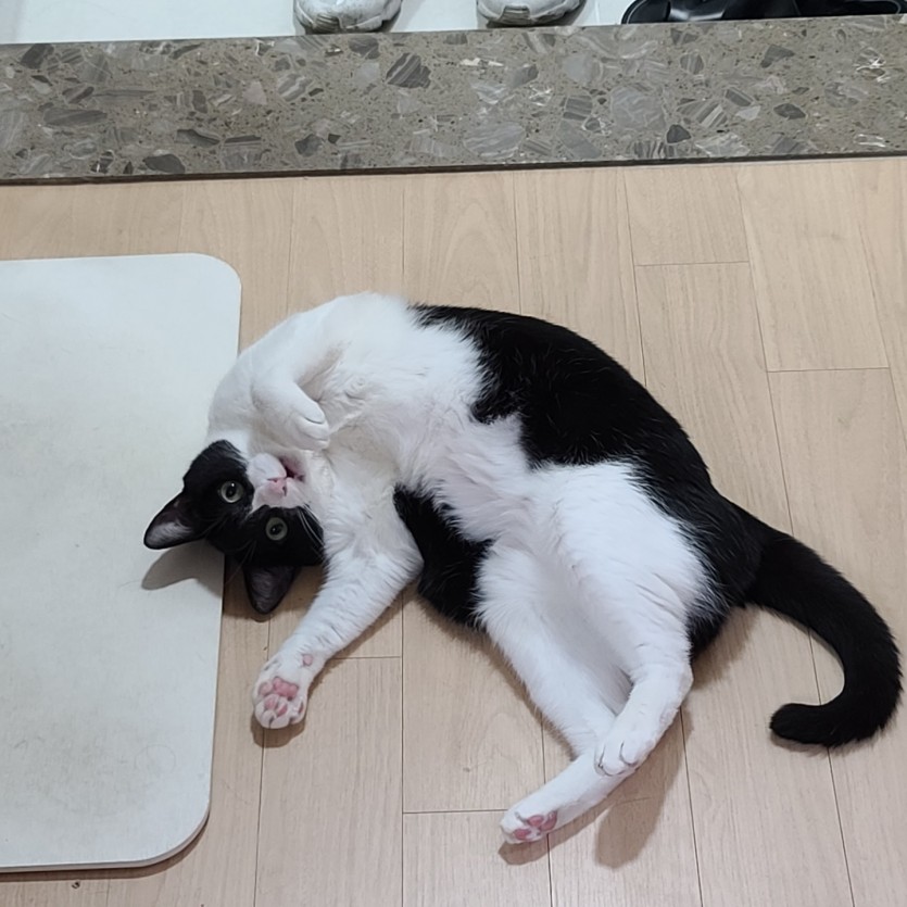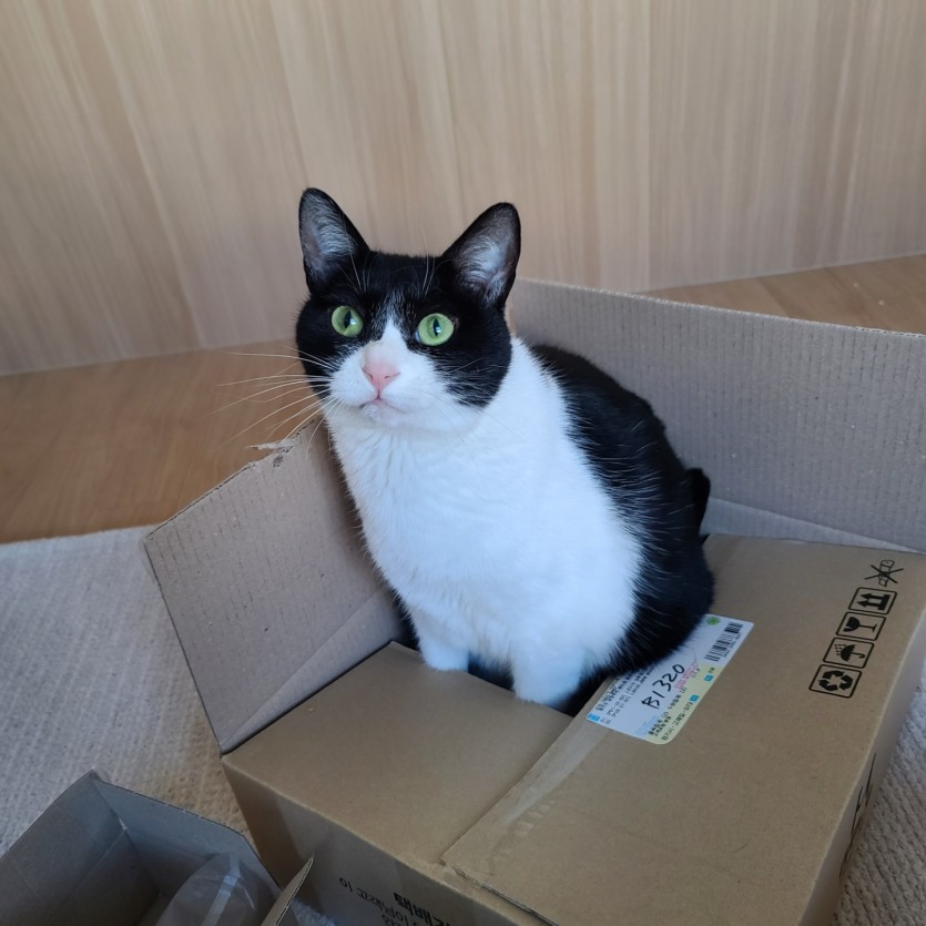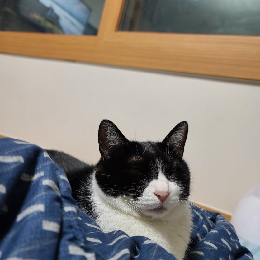 산이라는 이름을 가진 2016년 10월생 턱시도 고양이의 대부입니다.