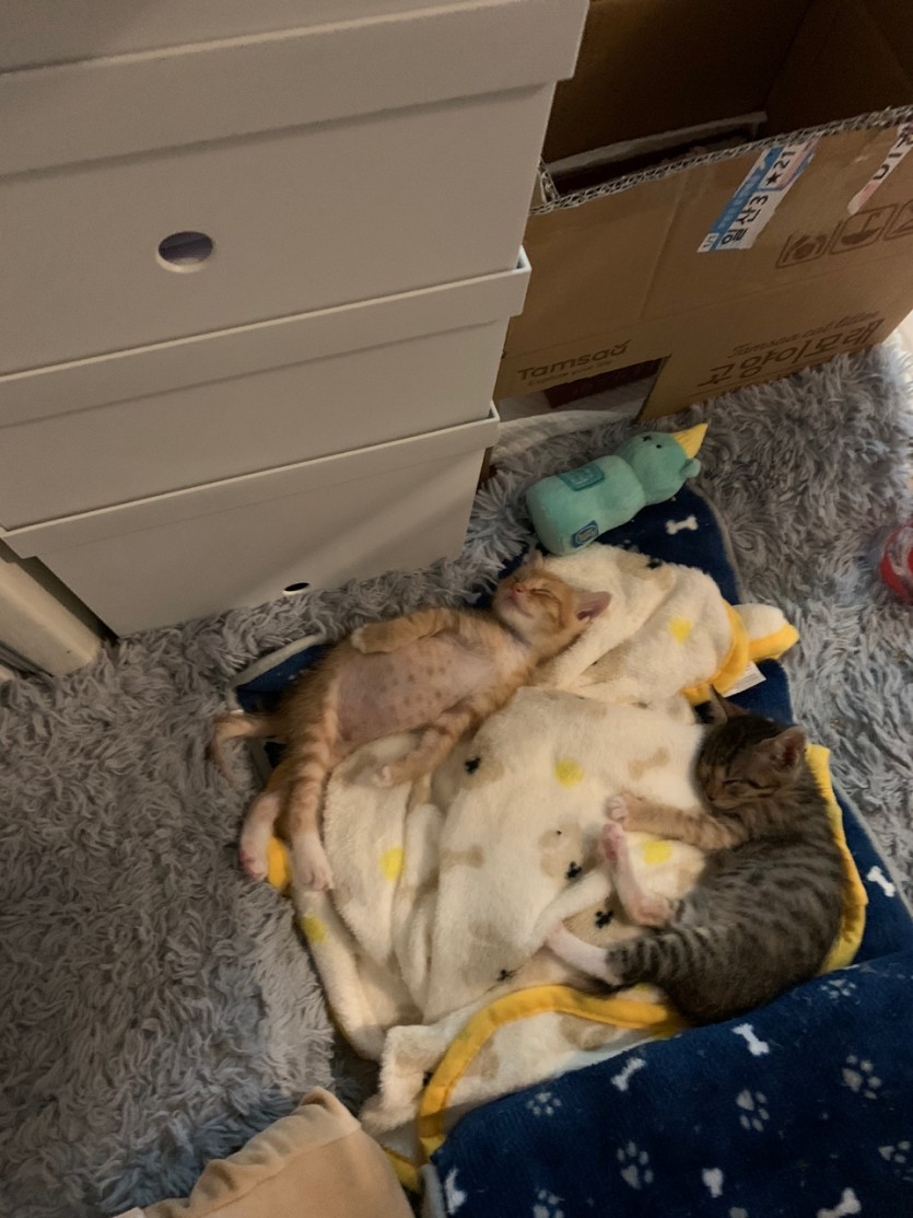 <div>3주전 주차장 밑에서 울고있는 새끼고양이 2마리 구조해서 임시보호중입니다.</div>