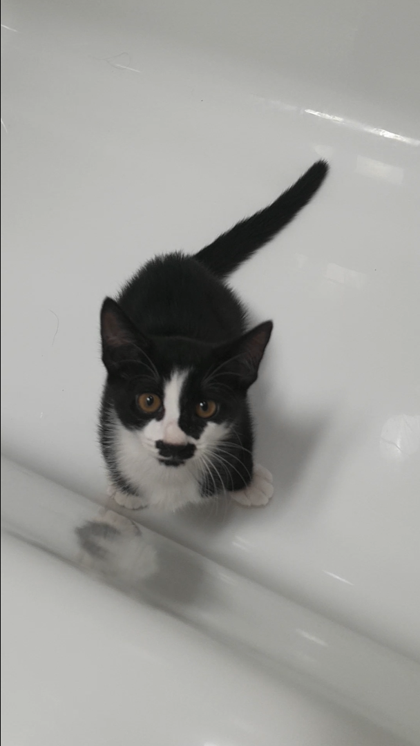 저희 넷째 애기는 5마리중에 가장 애교가 많은 귀여운 아이입니다. 머리와 등 쪽이 아예 까만색이 아니라 은은하게 줄무늬가 있는게 매력 포인트 중 하나입니다.^^